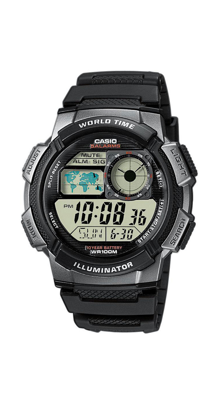 Многофункциональные часы со стильный дизайном - максимум качества и комфорта. Standard. Циферблат подсвечивается светодиодом. Послесвечение. 12-ти и 24-х часовой формат времени. Секундомер с точностью показаний 1/100с и временем измерения 24ч. SPLIT-хронограф. Таймер обратного отсчета от 1с до 24ч. Мировое время – 48 городов (31 часовой пояс), всемирное координированное время (UTC). Переход на зимнее и летнее время, возможность включения/отключения данной функции. Переключение между домашним и мировым временем. Режим «Мульти Тайм» - показания текущего времени в 4-х зафиксированных городах. Функция включения/отключения звука. Батарея рассчитана на 10 лет. Водонепроницаемость в соответствии с ISO 2281. Ремешок с классической застежкой.