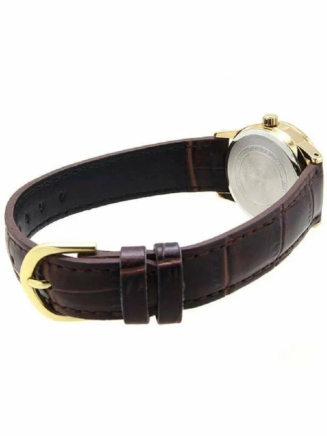 Элегантный дизайн и эффектное исполнение. Часы для идеального образа идеальной женщины. Циферблат с метками в виде штрихов и точек. Окошко даты и дня недели находится в положении 3 часа.