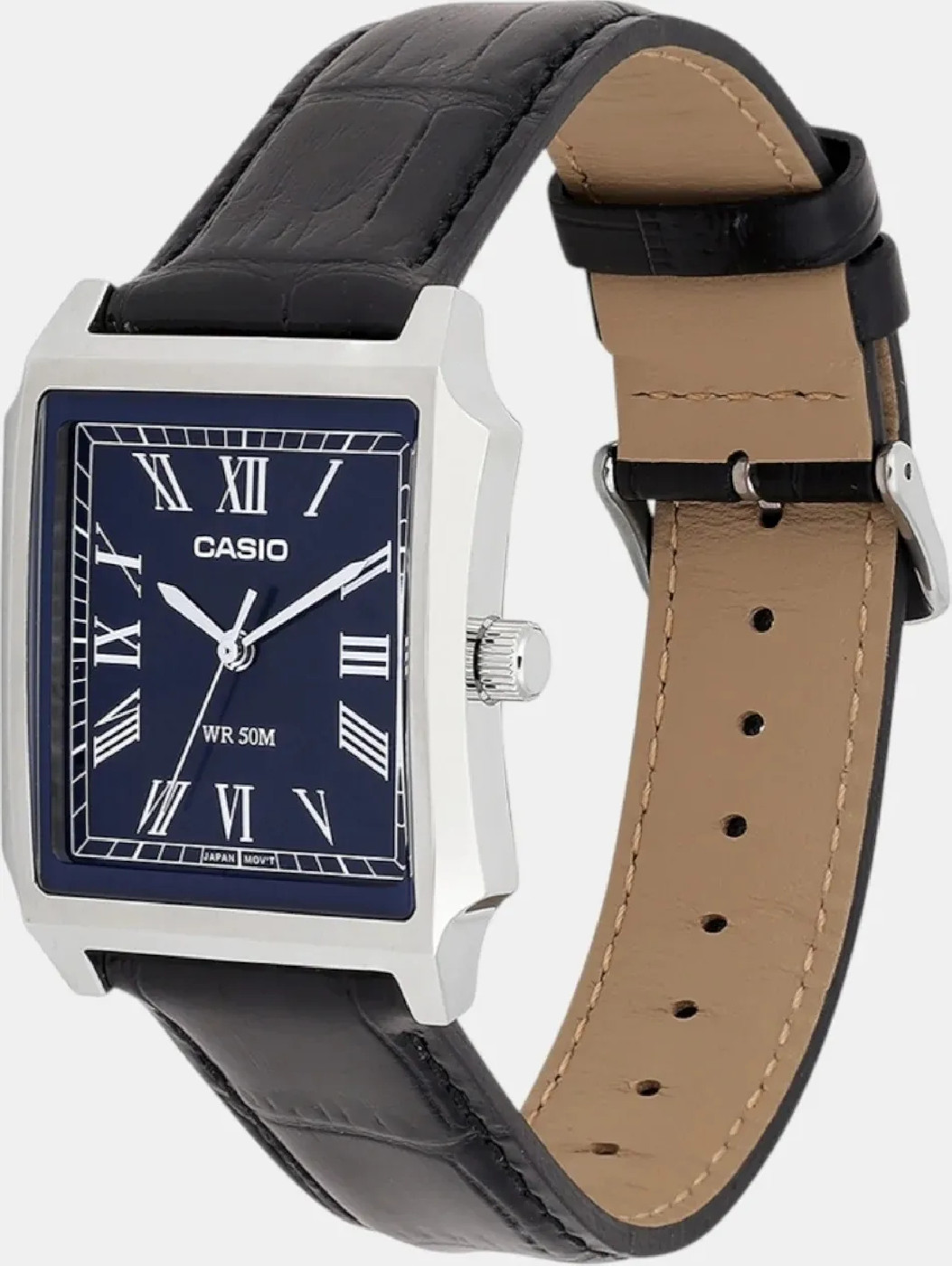 Casio Standard MTP-B190L-2B – стильная классика с современной надежностью Элегантный синий акцент – глубокий оттенок циферблата с римскими цифрами создает благородный и сдержанный образ Проверенная долговечность – корпус из нержавеющей стали устойчив к повседневным воздействиям Комфорт премиум-класса – ремешок из натуральной черной кожи мягко адаптируется к запястью Защита от непогоды – водонепроницаемость 50 WR выдерживает дождь и случайные брызги Стойкость к повреждениям – минеральное стекло обеспечивает четкую видимость без царапин Не требует обслуживания – кварцевый механизм с 3-летним сроком работы батареи Практичная функциональность – удобное отображение даты и точность хода ±20 сек./месяц Невесомое ношение – всего 43 грамма для комфорта в течение всего дня