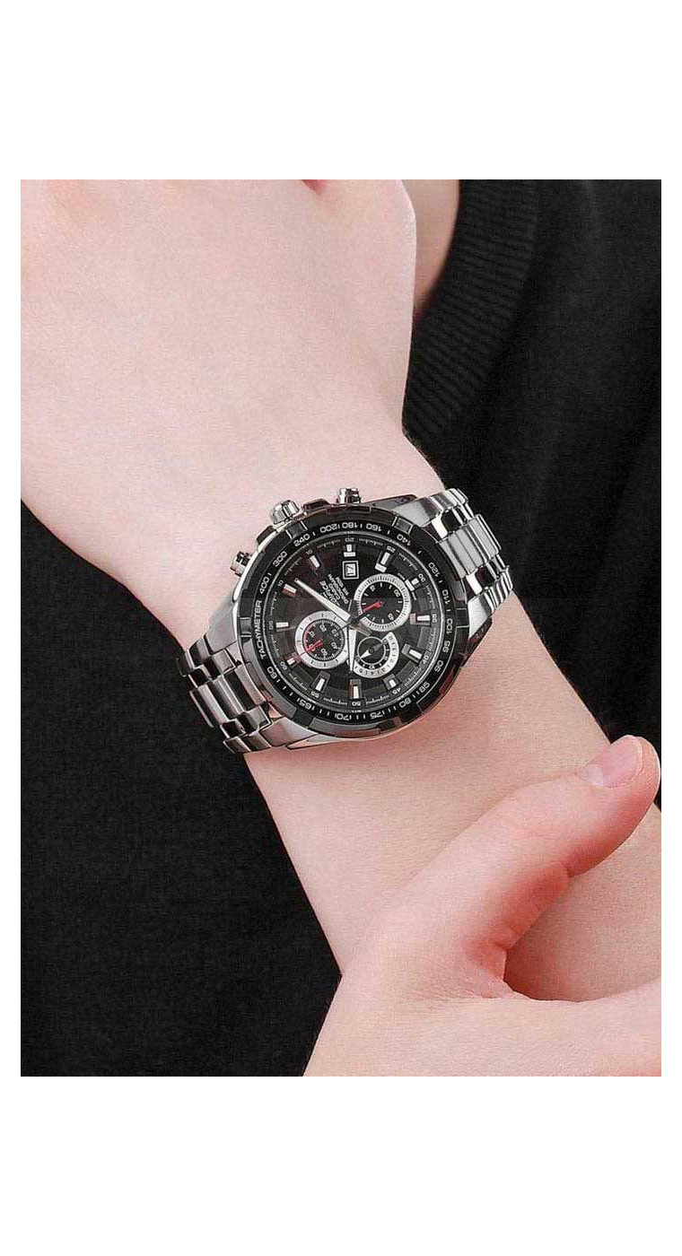 Перед вами харизматичная и узнаваемая модель Edifice со спортивным характером из серии EF-539 в стальном корпусе с большим аналоговым циферблатом черного цвета, ионизированным безелем и стальным браслетом! Помимо яркого современного дизайна на циферблате часов вы найдете три функциональных окошка отвечающих за секундомер, а также отдельное отображение текущей даты. Как и все эдифайсы часы водонепроницаемы, а циферблат защищен закаленным минеральным стеклом.
