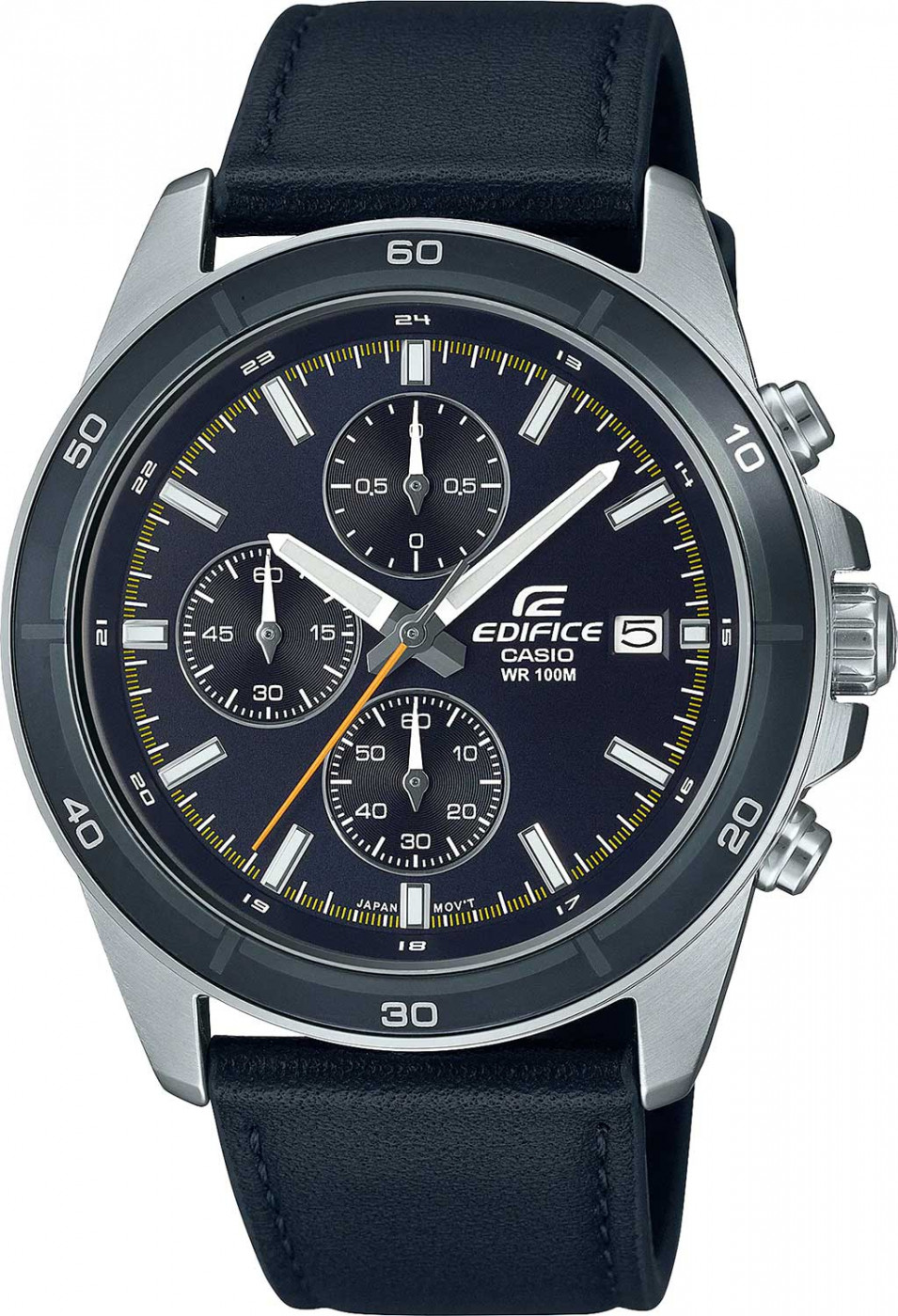 Перед вами эталон часов на каждый день! Небольшой лаконичный хронограф Edifice из серии EFR-526 в стальном корпусе с аналоговым циферблатом и безелем темно-синего оттенка на ремешке из натуральной кожи! Помимо отличного сдержанного дизайна на циферблате часов вы найдете три функциональных окошка отвечающих за секундомер и окошко отображения текущей даты. Часы водонепроницаемы, а циферблат защищен закаленным минеральным стеклом.