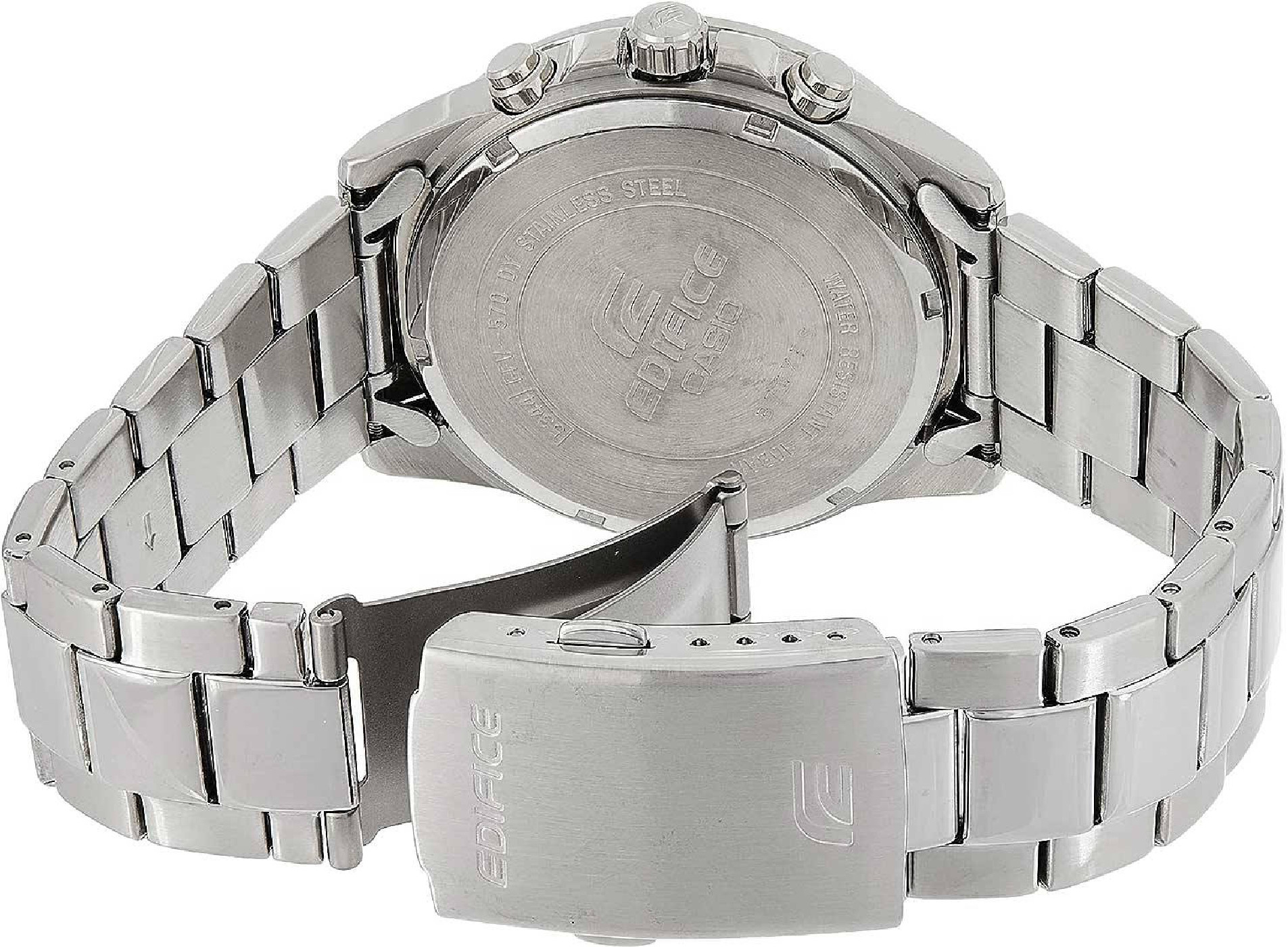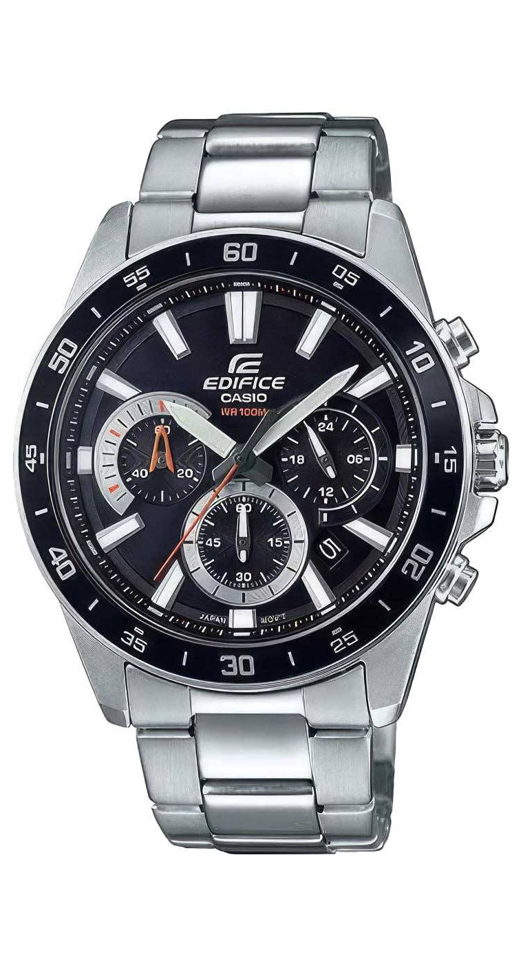 Свежий релиз 2025 года в коллекции Edifice — крупный хронограф из серии EFV-550 в стальном корпусе с синим циферблатом и безелем. Модель отличает внушительные размеры и спортивный автомобильный дизайн. Циферблат защищен прочным минеральным стеклом, а водозащита позволяет пользоваться часами в любых погодных условиях. Cекундомер, емкостью в один час и точностью измерения до десятых долей секунды, отображает свои показатели с помощью тройной индикации: у отметки 6, 9 и 12 часов по циферблату. Напоминаем, что серия EFV - это мидл-класс коллекции Edifice в виде небольшой линейки стальных хронографов. Модели серии EFV обладают различными расцветками и дизайнами, что позволяет выбирать их в качестве часов на каждый день огромному числу людей по всему миру!