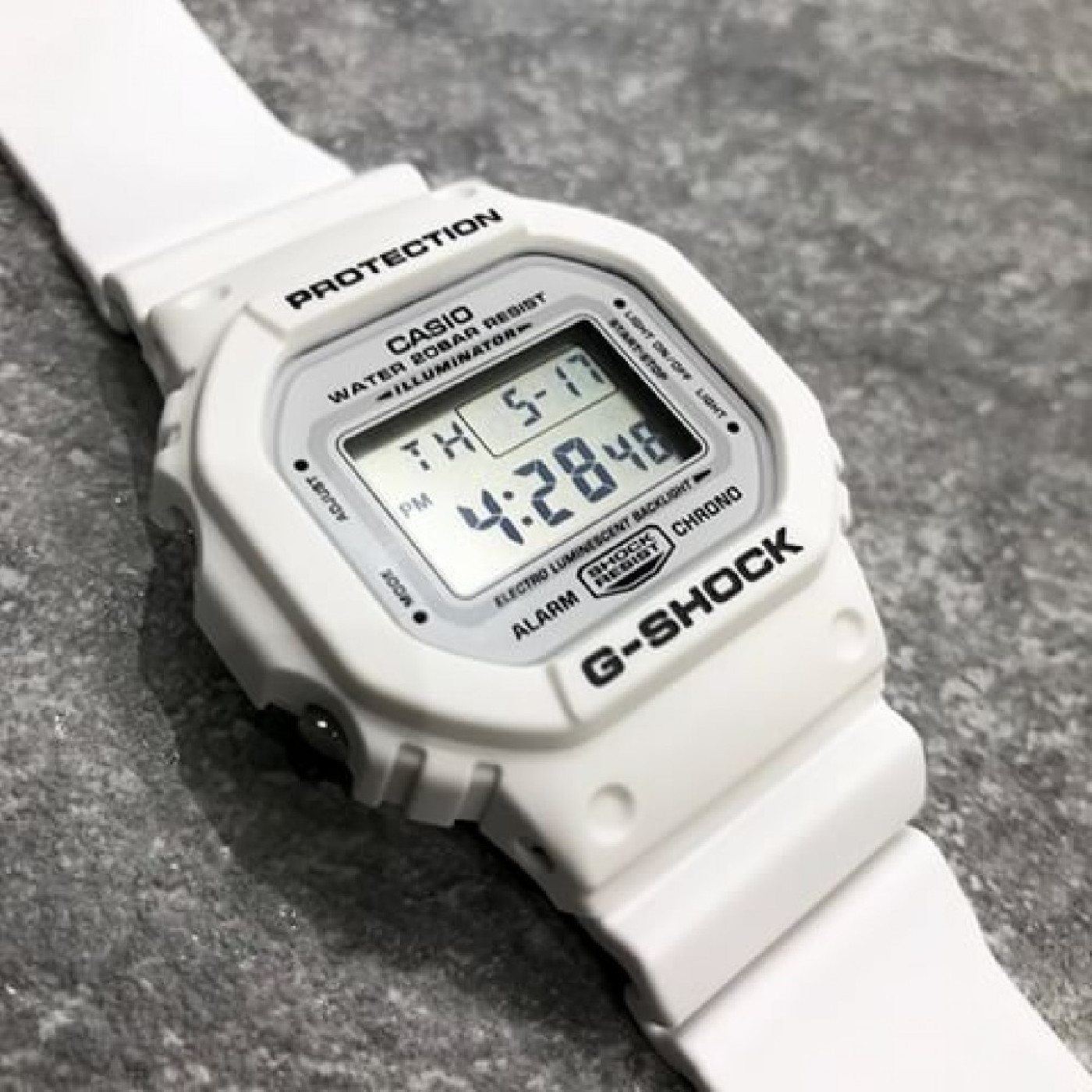 Супер-стильная и лаконичная модель 2018 года в матовом белом корпусе на базе олдскульной серии G-SHOCK DW-5600 гармонично дополнит собой ваш образ и обратит на себя внимание окружающих. Напоминаем, что силуэт корпуса DW-5600 давно стал часовой классикой и является одним из самых узнаваемых в мире наручных часов.