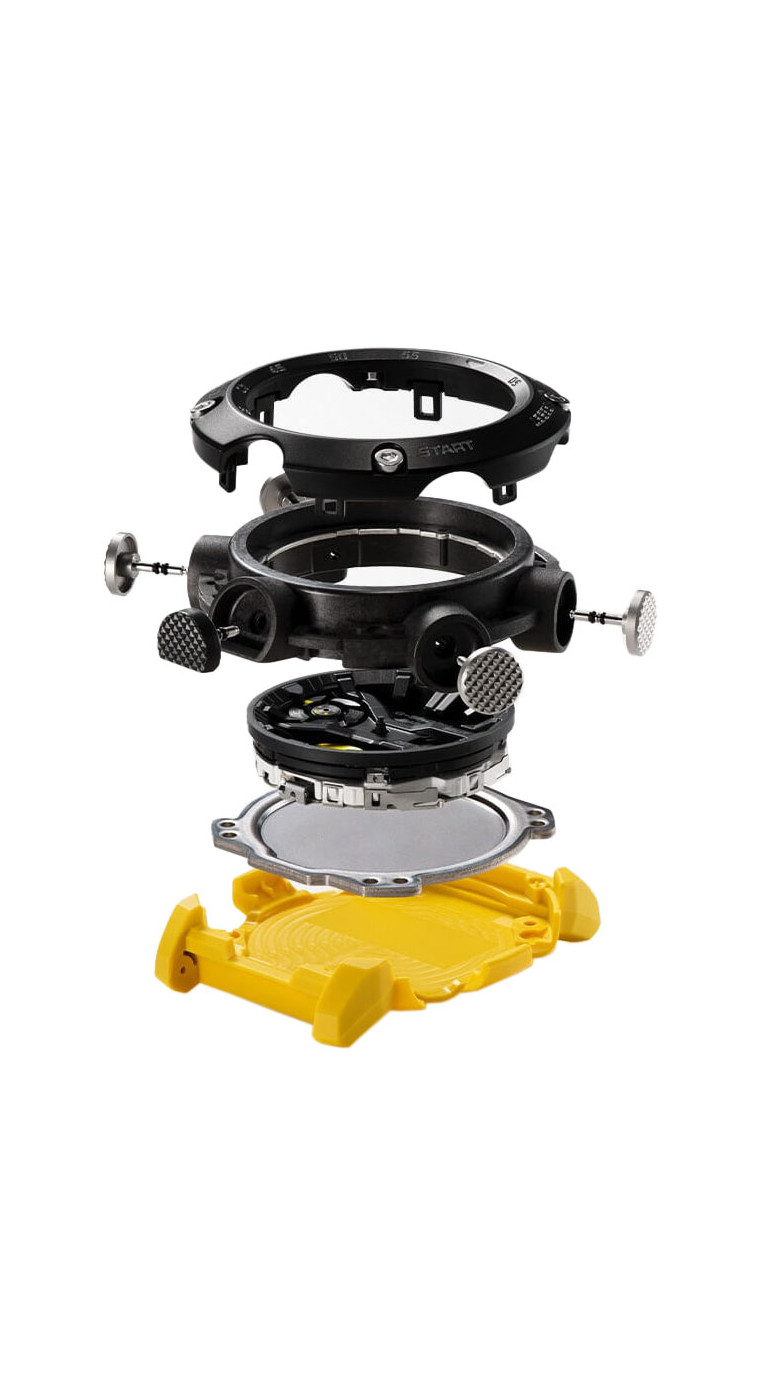 Противоударный корпус защищает механизм от ударов и вибрации. Цвет подсветки: белый. Стрелки часов прозрачные и только края окрашены в яркий неоновый цвет, такой же, как и основной ремешок. Мировое время – 48 городов (31 часовой пояс). Функция включения/отключения летнего времени. 12-ти и 24-х часовой формат времени. Секундомер с точностью показаний 1/100с и временем измерения 24ч. Сплит-хронограф. Таймер обратного отсчета от 1/1мин до 24ч с автоповтором. Функция перемещения стрелок. Функция отключения/включения звука. Двойная задняя крышка: стальная закрывает механизм, а поверх неё закреплена пластина из пластика. Благодаря этой накладке у этой модели появилась функция быстрой смены ремешка.