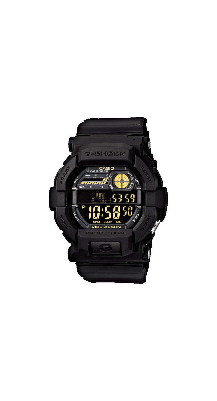 Черная модель G-Shock в брутальном матовом корпусе с инверсионным дисплеем и индикацией золотого цвета. Помимо впечатляющего дизайна и прекрасной тактильности на руке, данная модель на полимерном ремешке обладает редкой функцией вибро-уведомлений при срабатывании будильников или таймера. Не стоит забывать и про легендарную джишоковую ударопрочность, водонепроницаемость до 200 метров, автоматическую сверх-яркую подсветку и батарею на 5 лет.