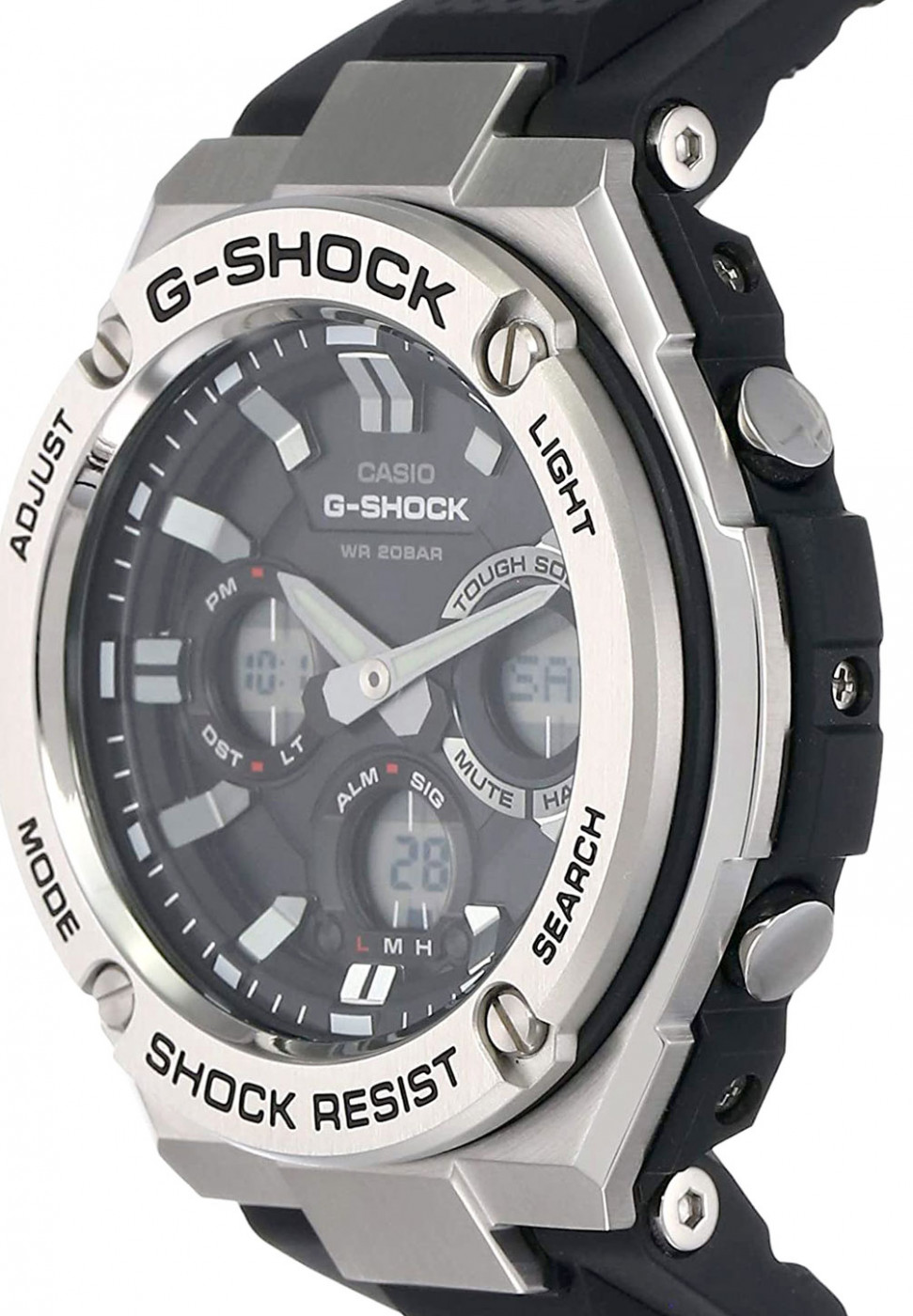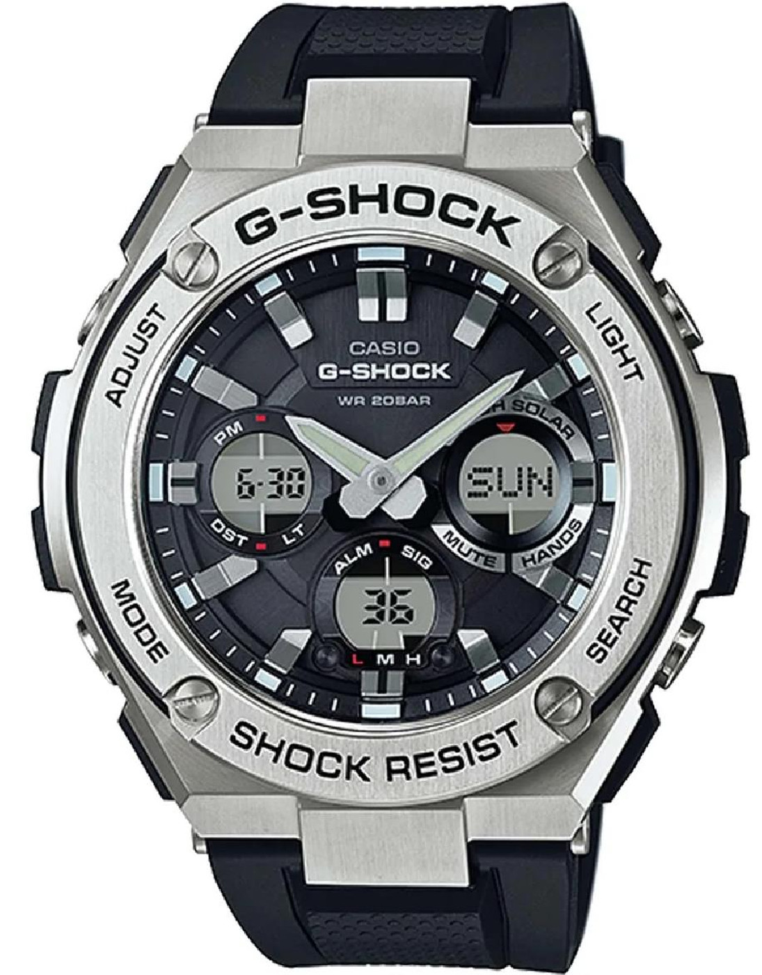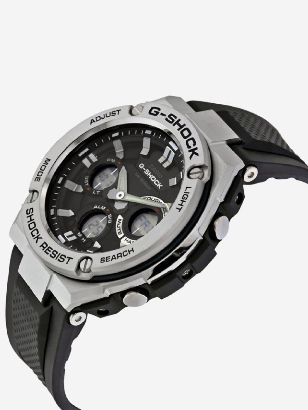 Перед вами классика серии G-STEEL, сверхпрочные джишоки со стальным корпусом и ремешком из полимерного материала. В данной серии дизайн G-SHOCK приближается к классическому образу механических наручных часов, при этом сохранив уникальную джишоковую начинку, что делает эти часы несравнимо прочнее и функциональнее, чем их механические собратья. На борту модели: работа от солнечной батареи, отображение времени в разных часовых поясах, индикация заряда батареи и еще около десятка часовых функций.