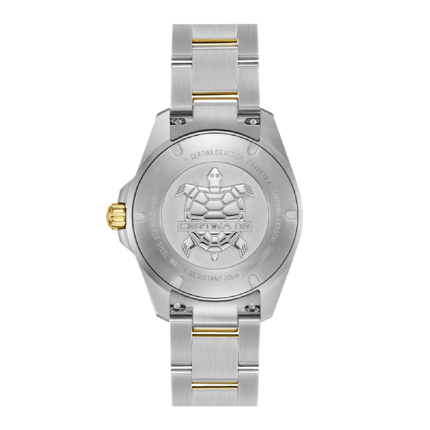 Certina DS Action C048.410.11.051.00 – элегантные мужские часы, сочетающие современный дизайн и высокую функциональность. Корпус диаметром 40 мм выполнен из нержавеющей стали 316L, обеспечивающей прочность и долговечность. Чёрный циферблат с метками и стрелками, покрытыми люминесцентным покрытием, обеспечивает отличную читаемость в любых условиях, а его поверхность защищена сапфировым стеклом с антибликовым покрытием, устойчивым к царапинам.Безель с PVD-покрытием. Часы оснащены швейцарским кварцевым механизмом ETA F06.412 с технологией Precidrive™, обеспечивающей исключительную точность хода.