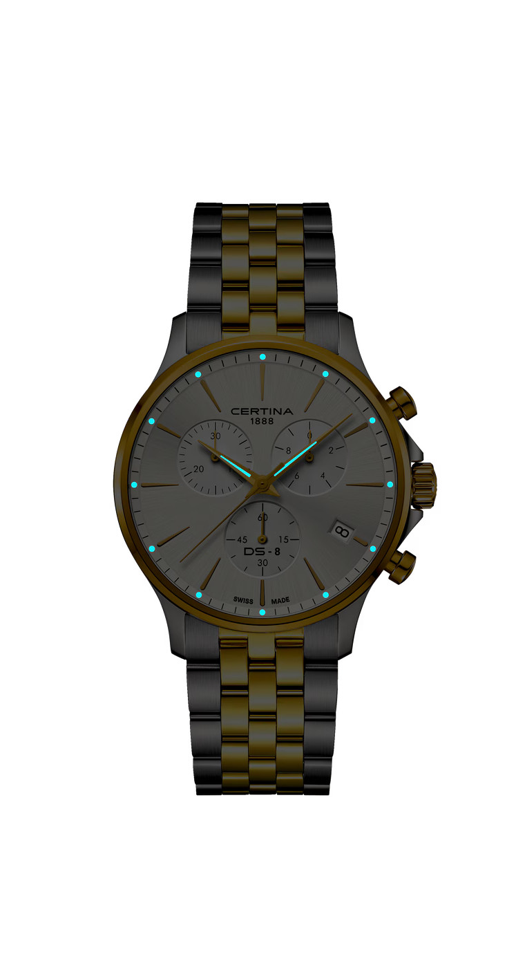Точность и изысканность гармонично сочетаются в часах Certina DS-8 Chrono, созданных для взыскательных мужчин. Благодаря кварцевому механизму Precidrive™, они обеспечивают исключительную точность хода при повседневном использовании. Хронограф обеспечивает точный отсчёт времени, а окошко даты обеспечивает быстрое и эффективное считывание календарных данных. Созданные для того, чтобы с блеском отмечать каждое мгновение, эти часы сочетают в себе производительность и неподвластный времени стиль. Прочные и изысканные, они отражают исключительное мастерство часового дела и идеально подходят для тех, кто ищет надёжные и функциональные часы.