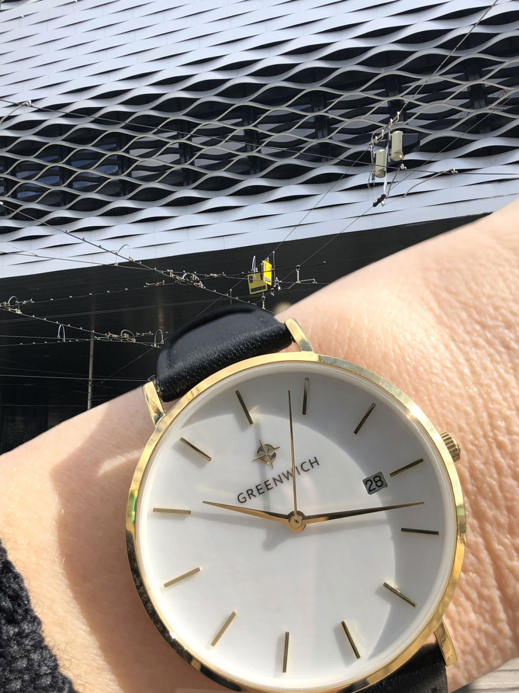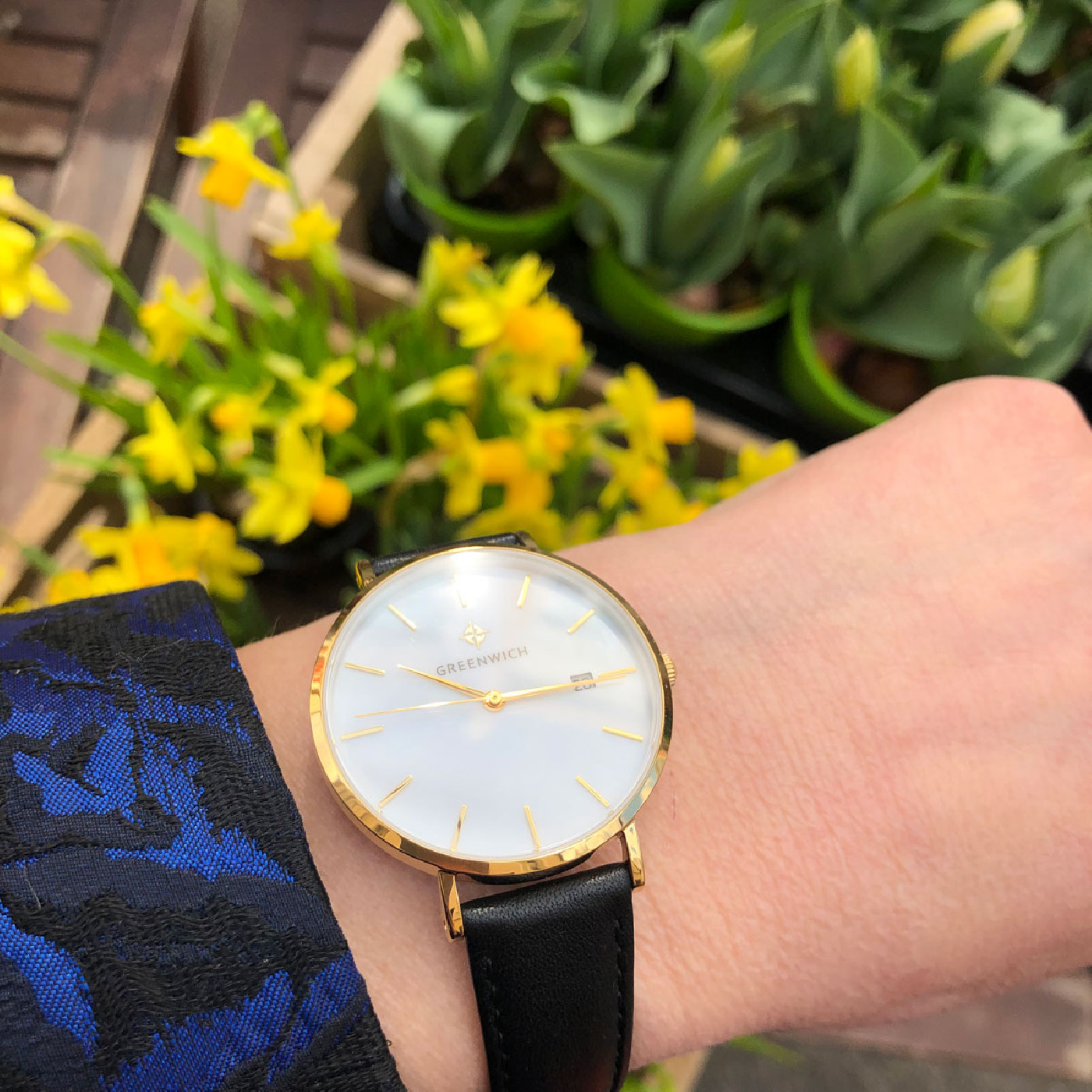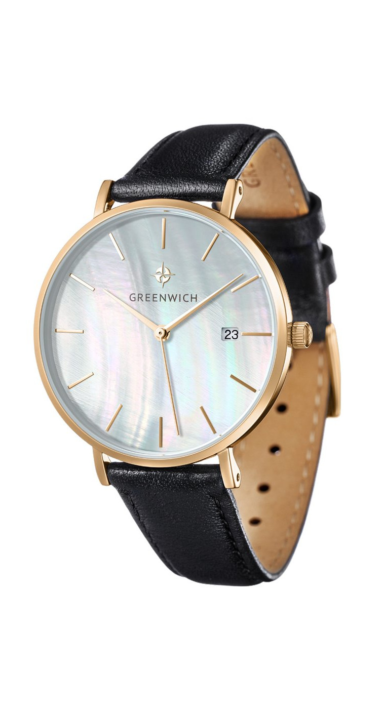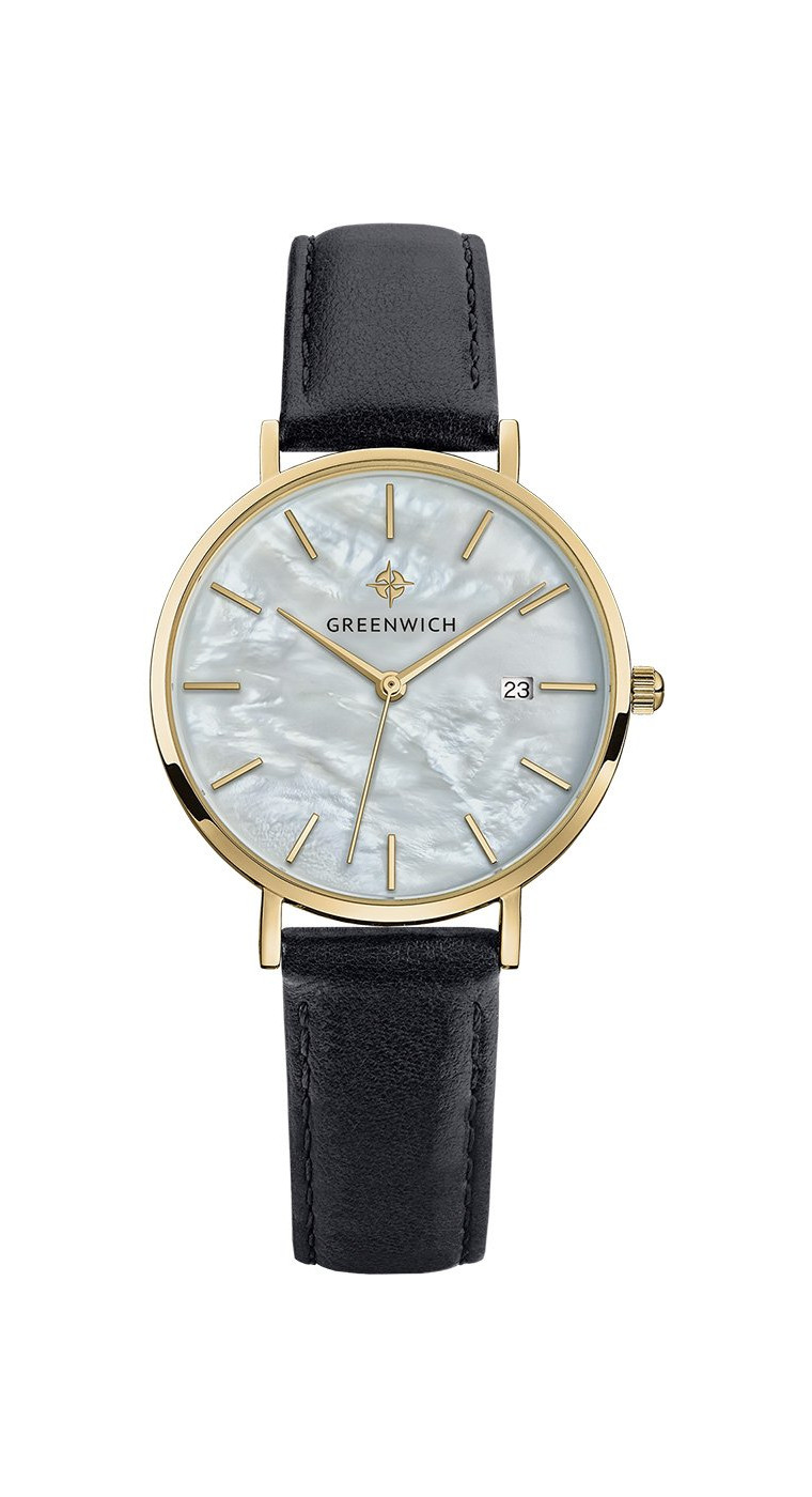 Лаконичность часов Shell не выглядит упрощенной: это красивый женственный аксессуар, обладающий собственной изюминкой: циферблатом из натурального перламутра белого цвета. Его переливы подчеркивают изысканность образа, а вариативность палитры гарантирует, что такая модель подойдет под гардероб любой расцветки. Изящный корпус диаметром 35 мм из нержавеющей стали украшает зеркальная полировка и PVD-покрытие из желтого золота. К накладным индексам и стрелкам прилагается еще одна полезная функция: текущая календарная дата, свериться с которой можно, взглянув на квадратное окошко, вынесенное в положение «3 часа». Дополняет образ черный ремешок из натуральной кожи с прошивкой.