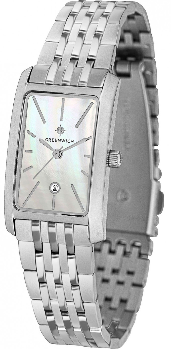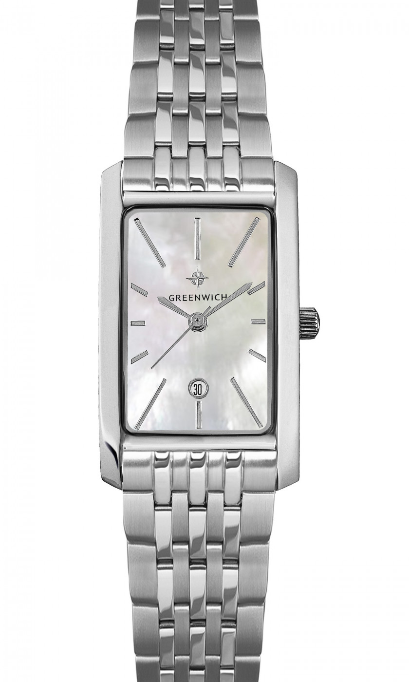 Прямоугольный корпус часов серии Vesta – настоящая находка для тех, кто хочет подчеркнуть изящество своего запястья. Лаконичный и небольшой по размеру, он хорошо лежит на руке во многом благодаря эргономичной форме. Корпус сделан из нержавеющей стали с зеркальной полировкой. Мерцание натурального перламутра белого цвета украшает циферблат. На нем расположены хорошо читаемые риски и стрелки, окошко даты выделено накладным обрамлением. Часы установлены на браслет из нержавеющей стали с застежкой-клипсой, надежной и удобной в использовании.