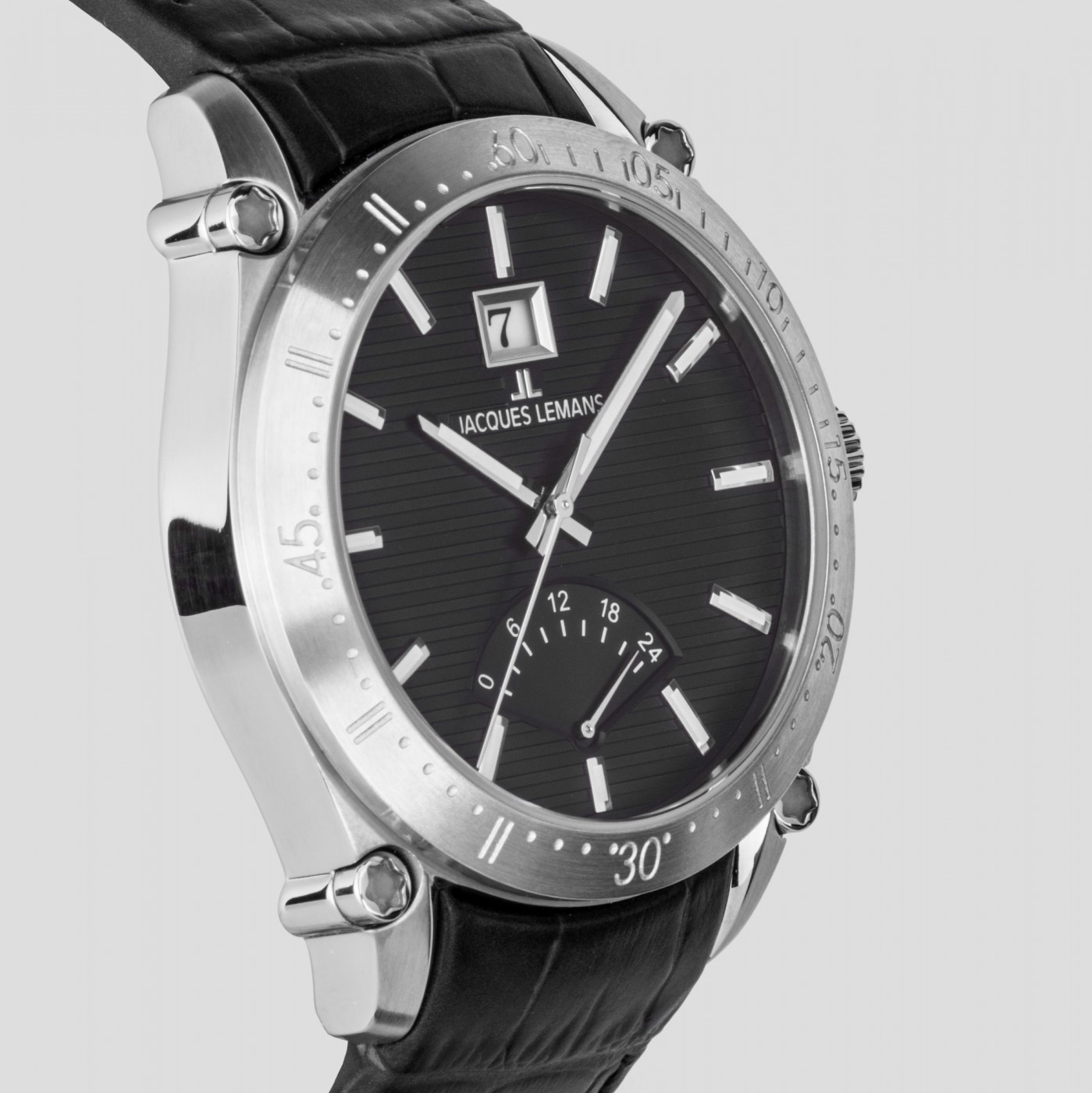Классический дизайн часов серии 1-2200 дополняют актуальные акценты, например, декоративные винты, закрепленные на ушках корпуса. Сам 44-миллиметровый корпус сделан из нержавеющей стали, тонкий безель украшает зеркальная полировка. Внутри работает японский механизм Miyota с автоподзаводом. На черном циферблате тщательно продумано расположение каждой детали. Дополнительные индикаторы 24-х часов и вынесенной стрелки секунд визуально выделены полировкой в виде солнечных лучей. Окошко даты расположено на 3 часах. Центральные стрелки и накладные риски покрывает люминесцентный состав, чтобы без проблем определить, который час даже в темноте. Минеральное стекло с сапфировым напылением защищает циферблат от внешних воздействий. У
