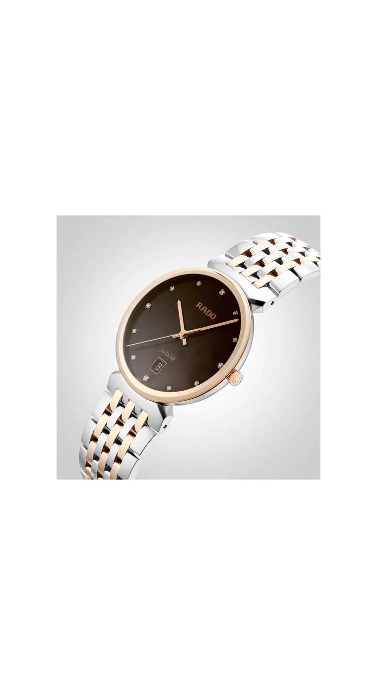 Коричневый циферблат с солнечными лучами, украшенный 12 бриллиантами и украшенный печатным логотипом «jubilé», идеально сочетается со стрелками цвета розового золота. Благодаря кварцевому механизму калибра R073 с тремя стрелками часы обладают большей точностью и устойчивостью к ударам.