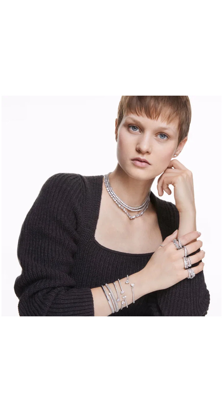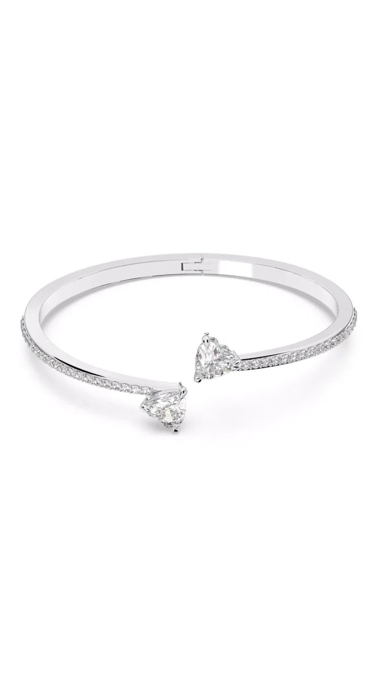 Простая элегантность и нотка сдержанной романтики делают этот браслет Swarovski идеальным подарком для себя или для вашей второй половинки. Дизайн с родиевым покрытием включает два сердечка, наклонённых друг к другу, элегантно выделяющихся на фоне остальных. Этот великолепный подарок заставит сиять глаза!