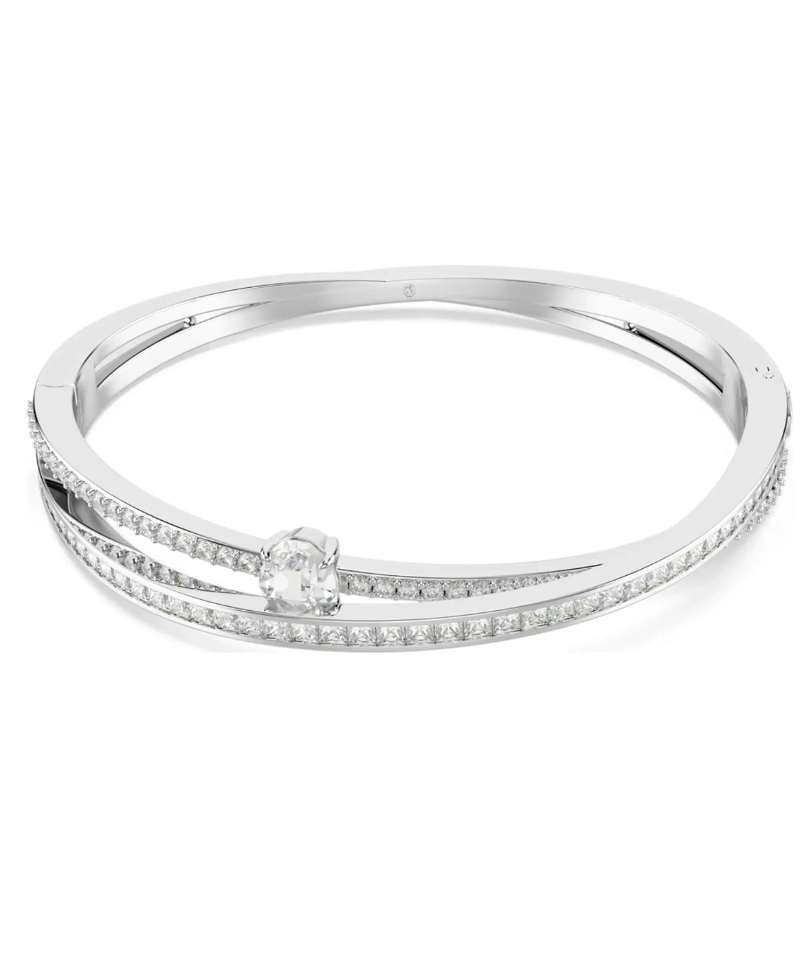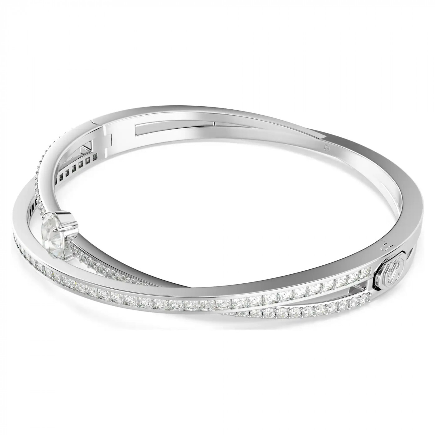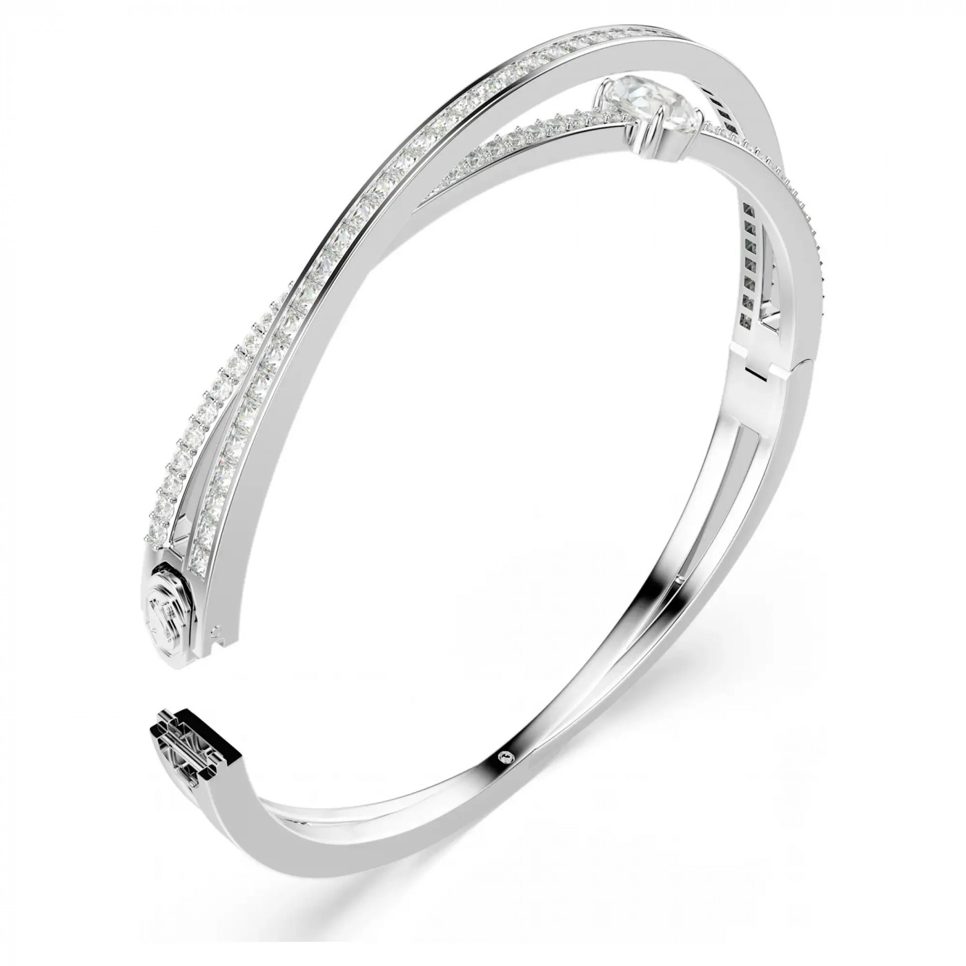 Этот извилистый браслет Hyperbola – настоящее чудо дизайна. Изделие состоит из двух перекрывающих друг друга полос с родиевым покрытием и украшено прозрачными кристаллами Swarovski в желобчатой и крапановой оправах. Дополнительный кристалл овальной огранки между ними придает изделию дополнительный эффект. Сочетайте это изысканное украшение с минималистичным нарядом, чтобы подчеркнуть его красоту на контрасте.