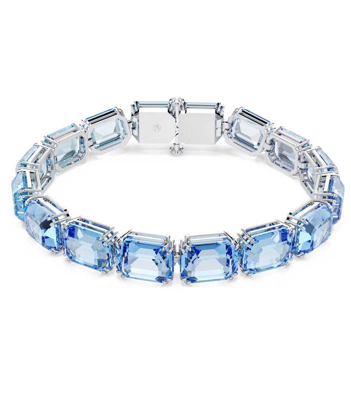 Откройте для себя модное веселье с этим ярким синим браслетом Millenia. Изделие с родиевым покрытием украшено ярким градиентом кристаллов восьмиугольной огранки. Завораживающий и выразительный, этот браслет создан для дней, которые заслуживают ярких красок.