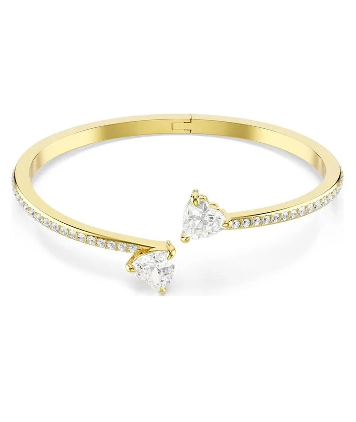 Искусно выполненная простота и нотка романтики делают этот браслет Swarovski идеальным подарком для особенного человека. Дизайн с покрытием оттенка цвета желтого золота отличается исключительной элегантностью и украшен двумя кристаллами Swarovski в форме сердца. Великолепный подарок для того, кого вы обожаете.