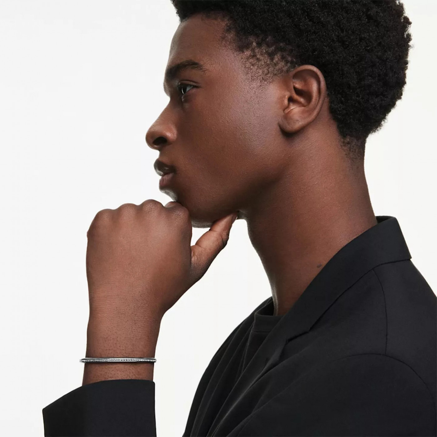 Материал: металл. Цвет: черный, серый. Отделка: рутениевое покрытие. Камень-вставка: кристалл Swarovski. Габаритные размеры: длина браслета 18,3 см, размер мотива 0,4 х 6,8 см, диаметр браслета 6,2 x 5,4 см.