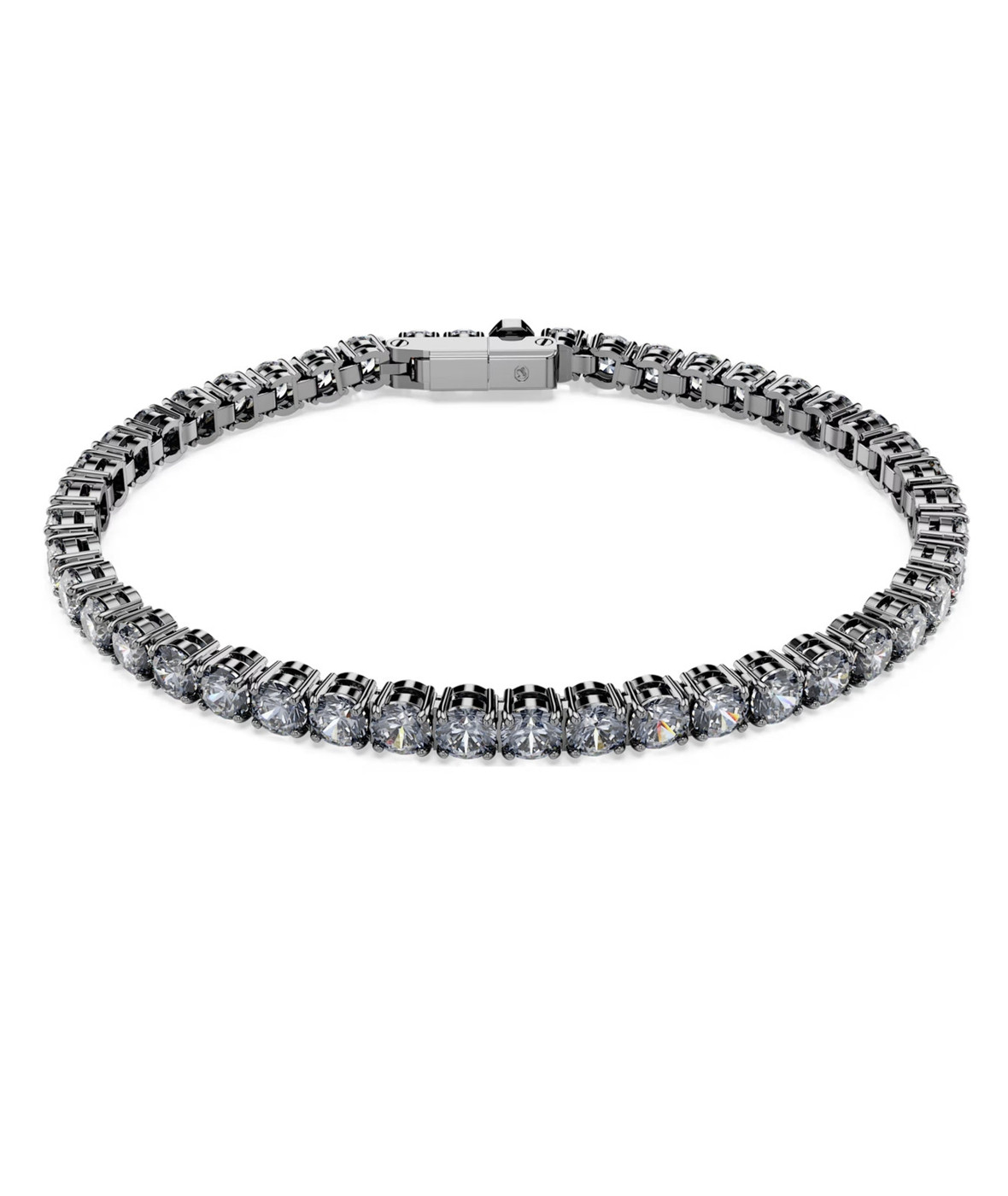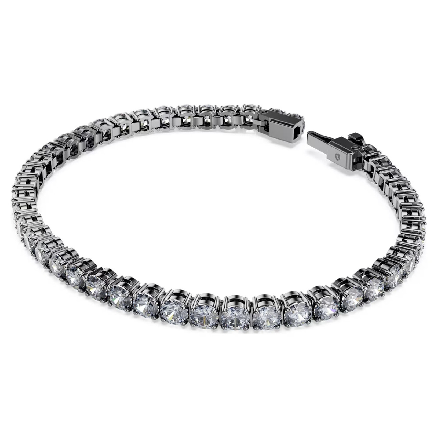 Откройте для себя мощную эволюцию классического теннисного браслета. Этот дизайн с рутениевым покрытием отличается полным обрамлением из серебристо-серыхкристаллов Swarovski и простой в использовании застежкой Matrix Tennis. Добавляя интриги к любому образу, эта отличительная деталь — идеальный способ подчеркнуть ваш стиль.