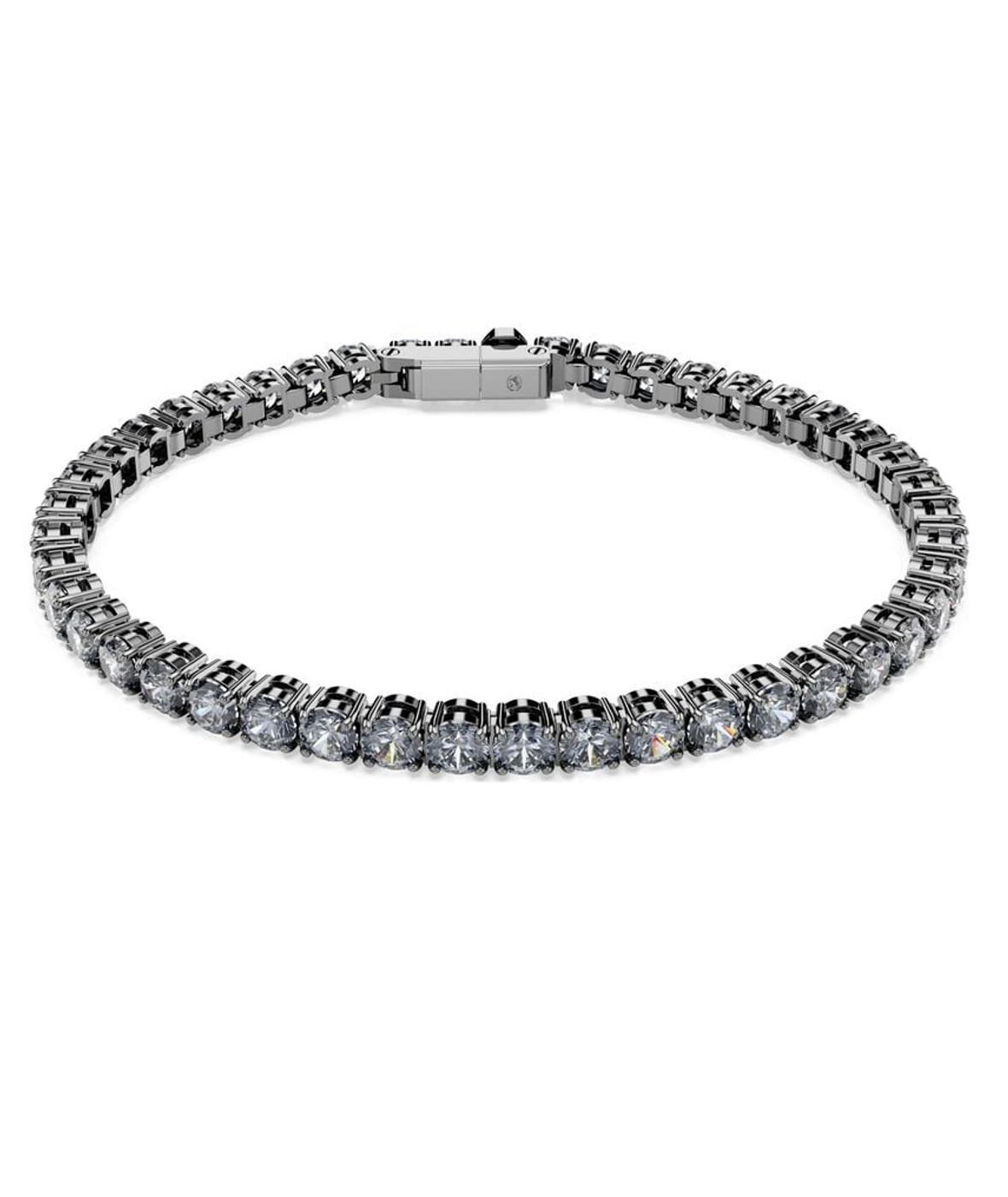 Откройте для себя мощную эволюцию классического теннисного браслета. Этот дизайн с рутениевым покрытием имеет полное окружение из серебристо-серых кристаллов Swarovski и простую в использовании застежку Matrix Tennis. Добавляя интриги к любому образу, этот отличительный элемент является идеальным способом подчеркнуть ваш стиль.