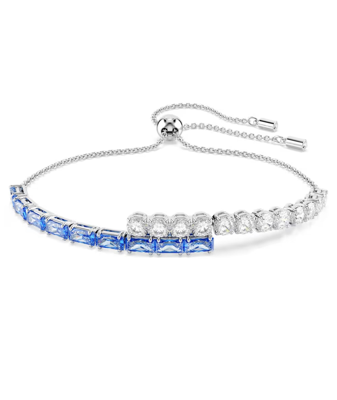 Изящный, но яркий, этот браслет Matrix — идеальный способ добавить изюминку в ваш стиль. Дизайн с родиевым покрытием украшен прозрачными и синими кристаллами Swarovski в ярком сочетании круглой и багетной огранки, а скользящая застёжка обеспечивает удобную посадку. Этот браслет можно носить с другими украшениями Matrix, чтобы подчеркнуть цвет и сияние любого наряда.
