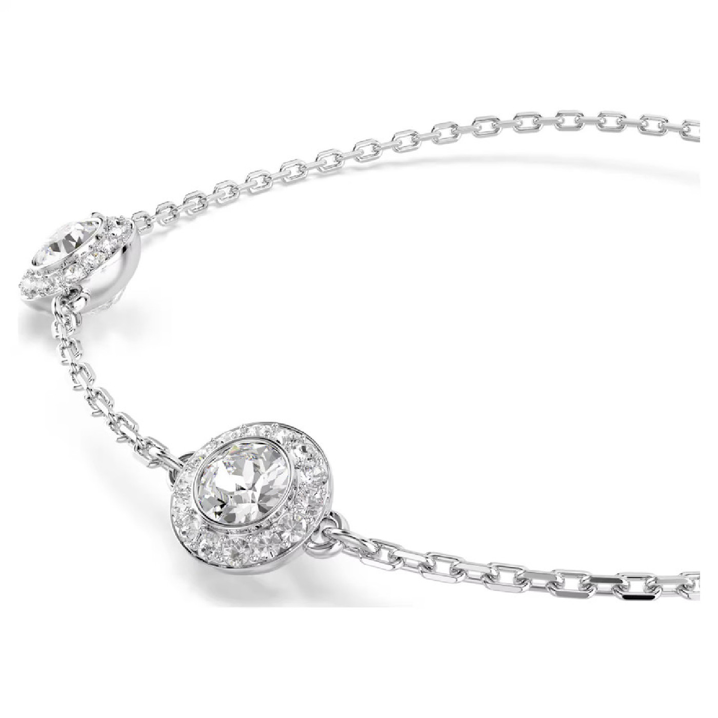 Этот инновационный браслет Swarovski создан для игривой и универсальной носки. Цепочка с родиевым покрытием оснащена раздвижным механизмом для удобной регулировки посадки и украшена тремя двусторонними мотивами. Просто переверните браслет, чтобы увидеть другую композицию из кристаллов круглой огранки. Сочетайте с другими украшениями Una Angelic для создания образа непревзойденного сияния.