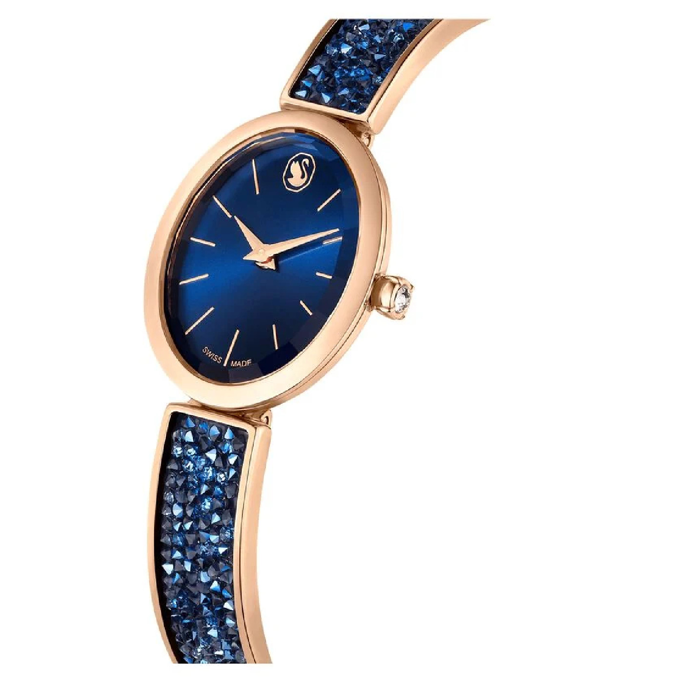Сияющая роскошь этих изысканных часов восхитит вас и подчеркнет вашу неповторимую элегантность. Женские кварцевые часы Crystal Rock Oval. Элегантный овальный корпус выполнен из нержавеющей стали. Под граненым минеральным стеклом открывается циферблат, украшенный множеством сверкающих кристаллов, с логотипом Swarovski в виде лебедя в положении 12 часов и метками в виде штрихов. Клиновидные стрелки в стиле Dauphine. Секундная стрелка отсутствует. Заводная головка украшена кристаллом круглой огранки.