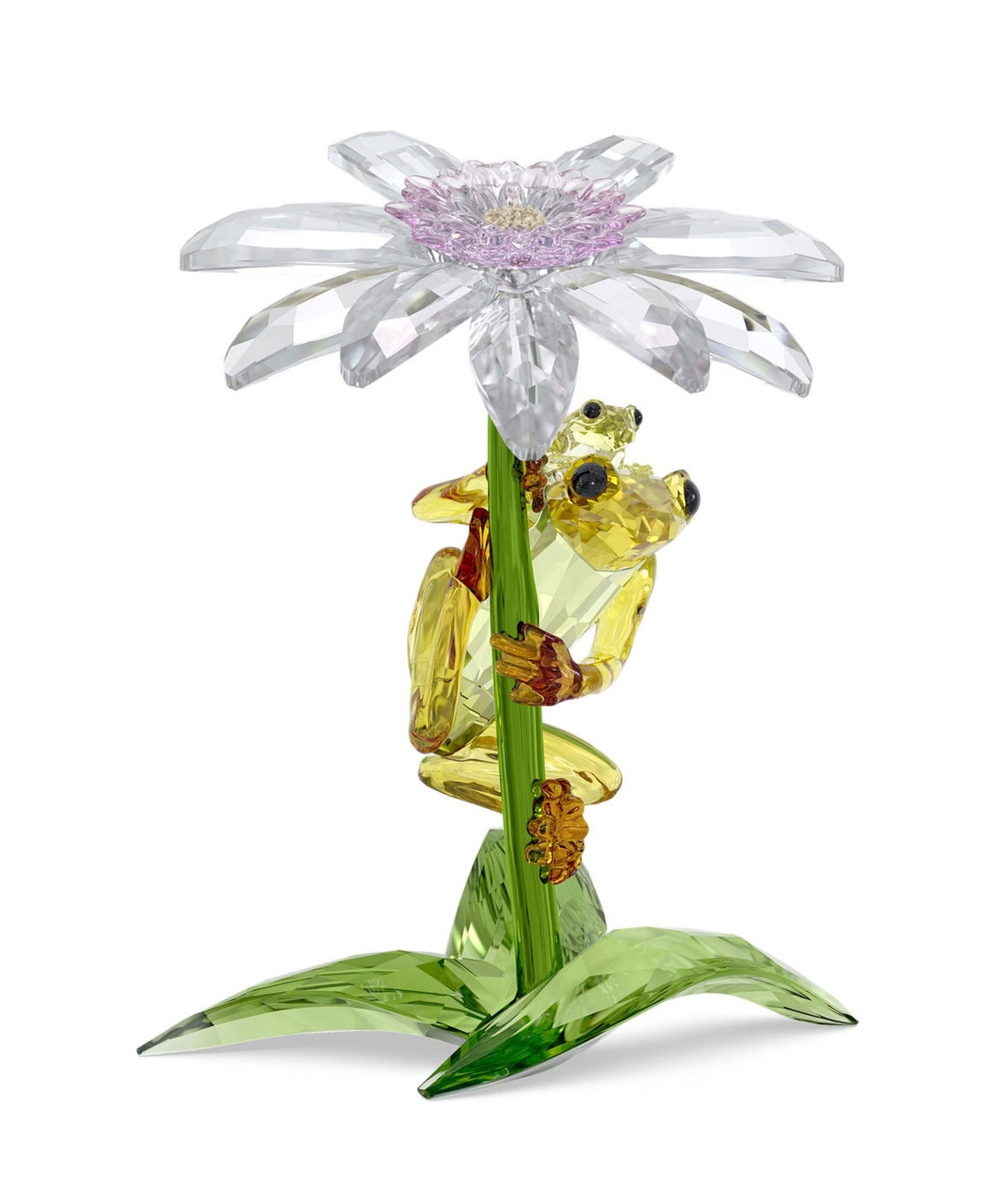 В этой реалистичной сцене лягушонок-мать и лягушонок укрываются от дождя под ярким цветком маргаритки. Это изящное творение выполнено в разнообразных цветах и демонстрирует неповторимое мастерство Swarovski благодаря 986 граням и деталям из лакированного металла. Добавьте это украшение в интерьер, чтобы оно стало символом спокойствия и семейного единства. Декоративный элемент. Не игрушка. Не подходит для детей младше 15 лет.