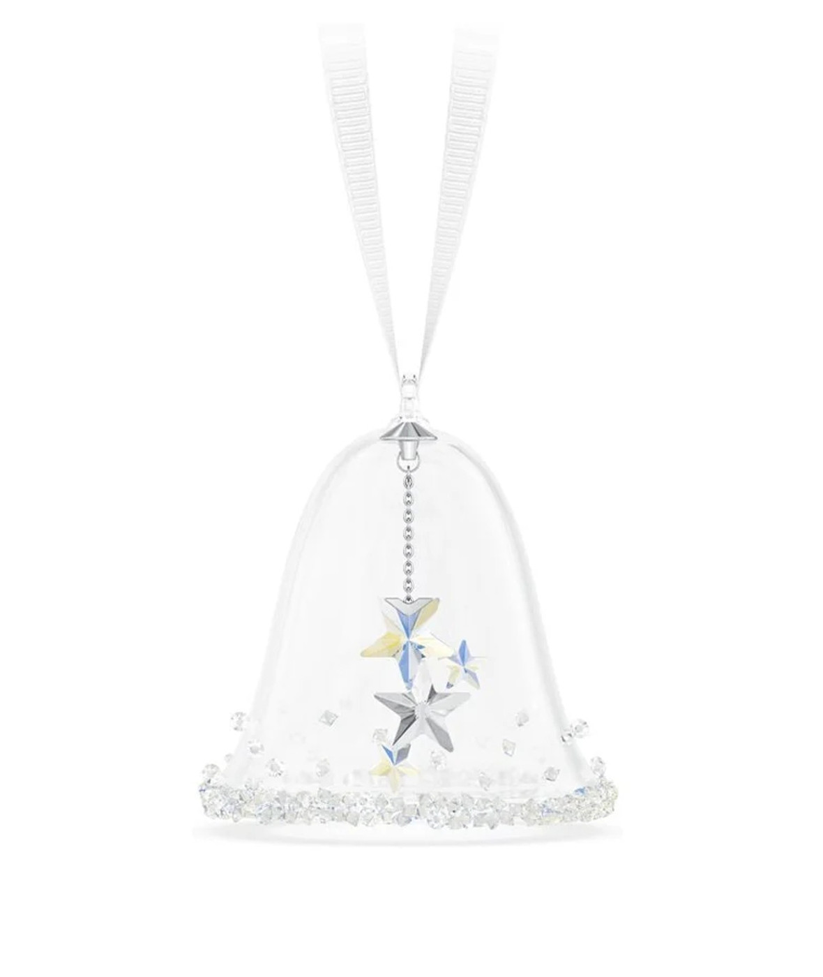 Впервые компания Swarovski создала миниатюрную версию своего традиционного колокольчика. Безупречный стеклянный дизайн покрыт примерно 300 мелкими кристаллами, а внутри находится язычок звезд, выполненный из 108 граней и создающий завораживающий эффект северного сияния. Изделие подвешено на белой ленте из грогрена, соединенной с металлическим колпачком серебристого цвета, что позволяет создать идеальное украшение вашего дома, подчеркивающее его изысканную красоту. Декоративный предмет. Не игрушка. Не подходит для детей младше 15 лет.