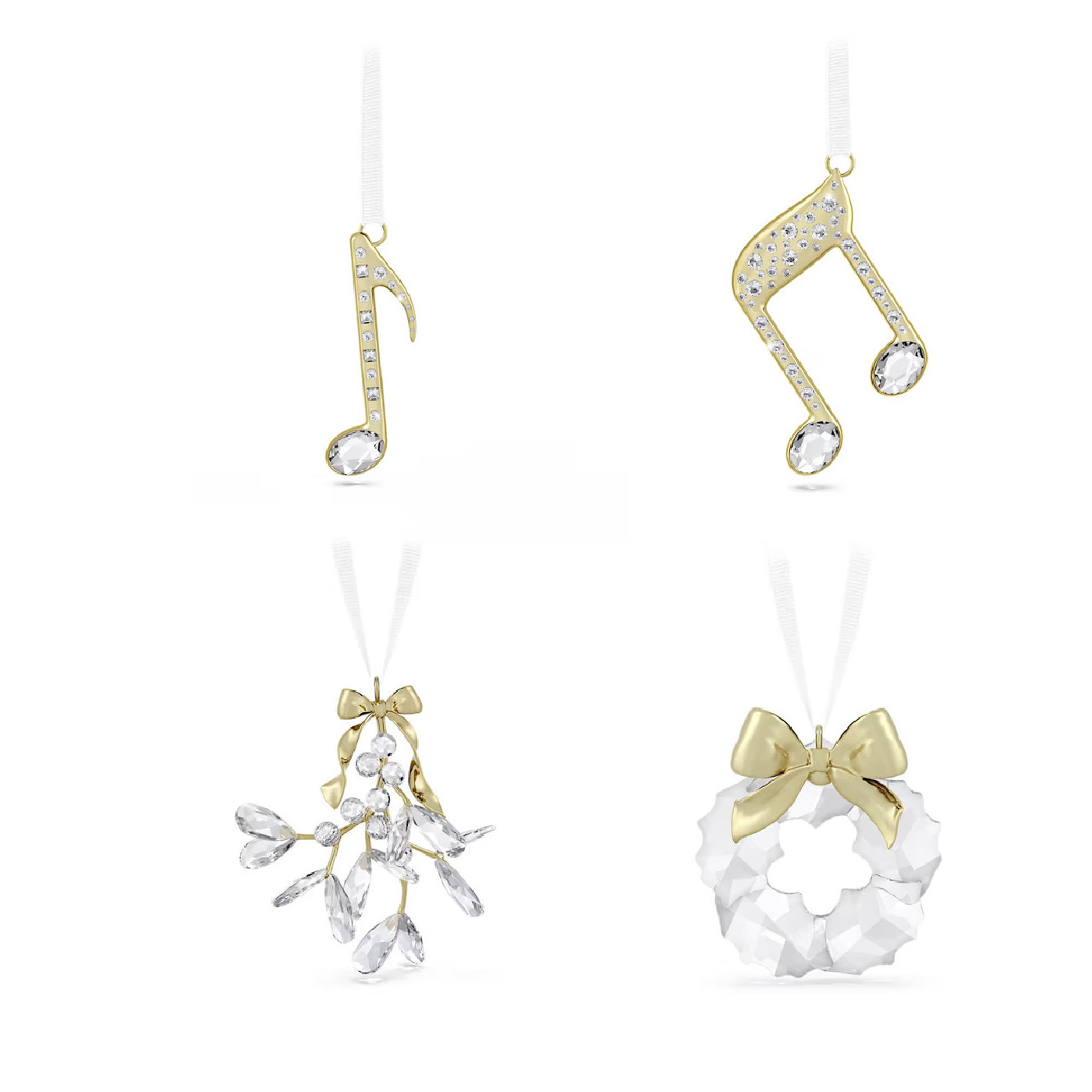 Этот роскошный венок-украшение — вневременной символ праздничной элегантности. Подвешенный на белой ленте из грогрена, этот украшенный кристаллами венок имеет 108 светоотражающих граней и блестящий бант из металла цвета шампанского золота. Повесьте его на видном месте, чтобы вызвать чувство радости и праздника. Декоративный предмет. Не игрушка. Не подходит для детей младше 15 лет.