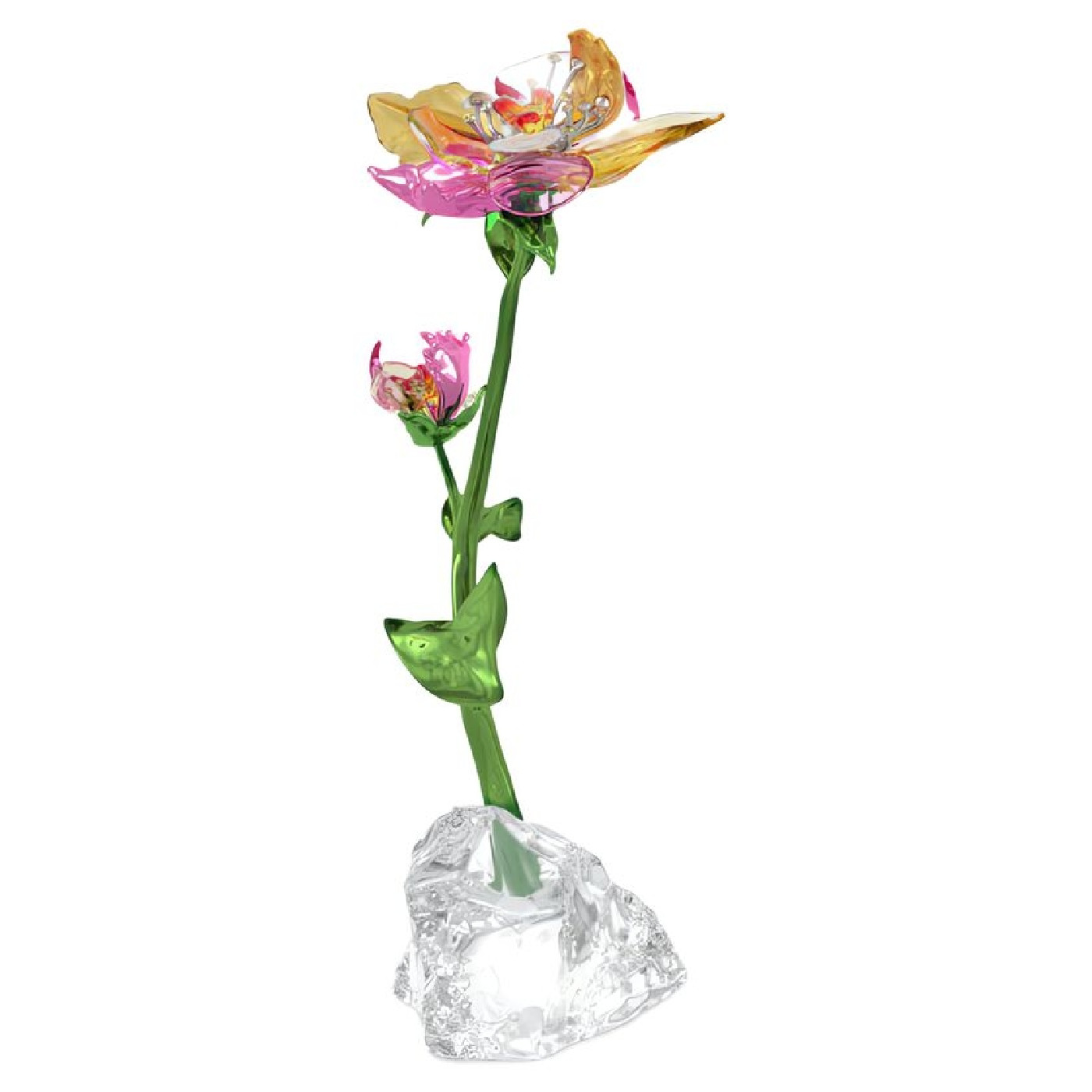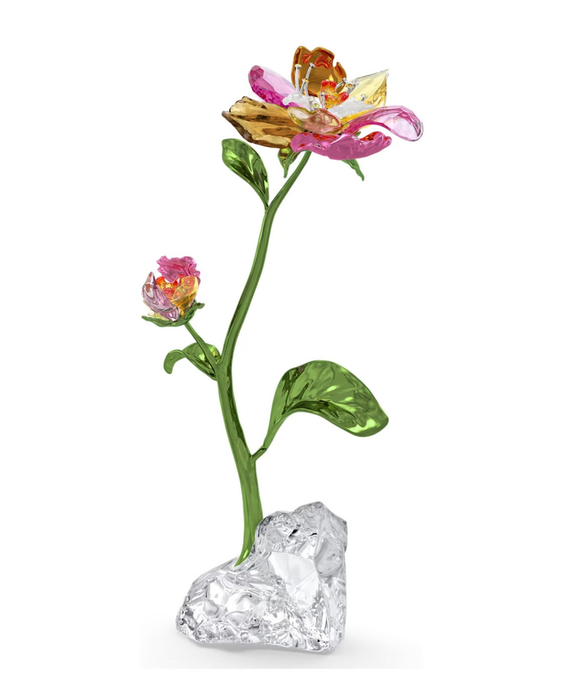 Обнимите цветок, который всегда в полном расцвете. Эта необычная фигурка, возвышающаяся на своем элегантном зеленом стебле, изготовлена из различных оттенков желтых и розовых кристаллов со 136 красивыми гранями, дополнена лакированными металлическими акцентами и 23 дополнительными камнями. Яркий штрих природы, который украсит любой дом. Предмет декора. Не игрушка. Не подходит для детей младше 15 лет.