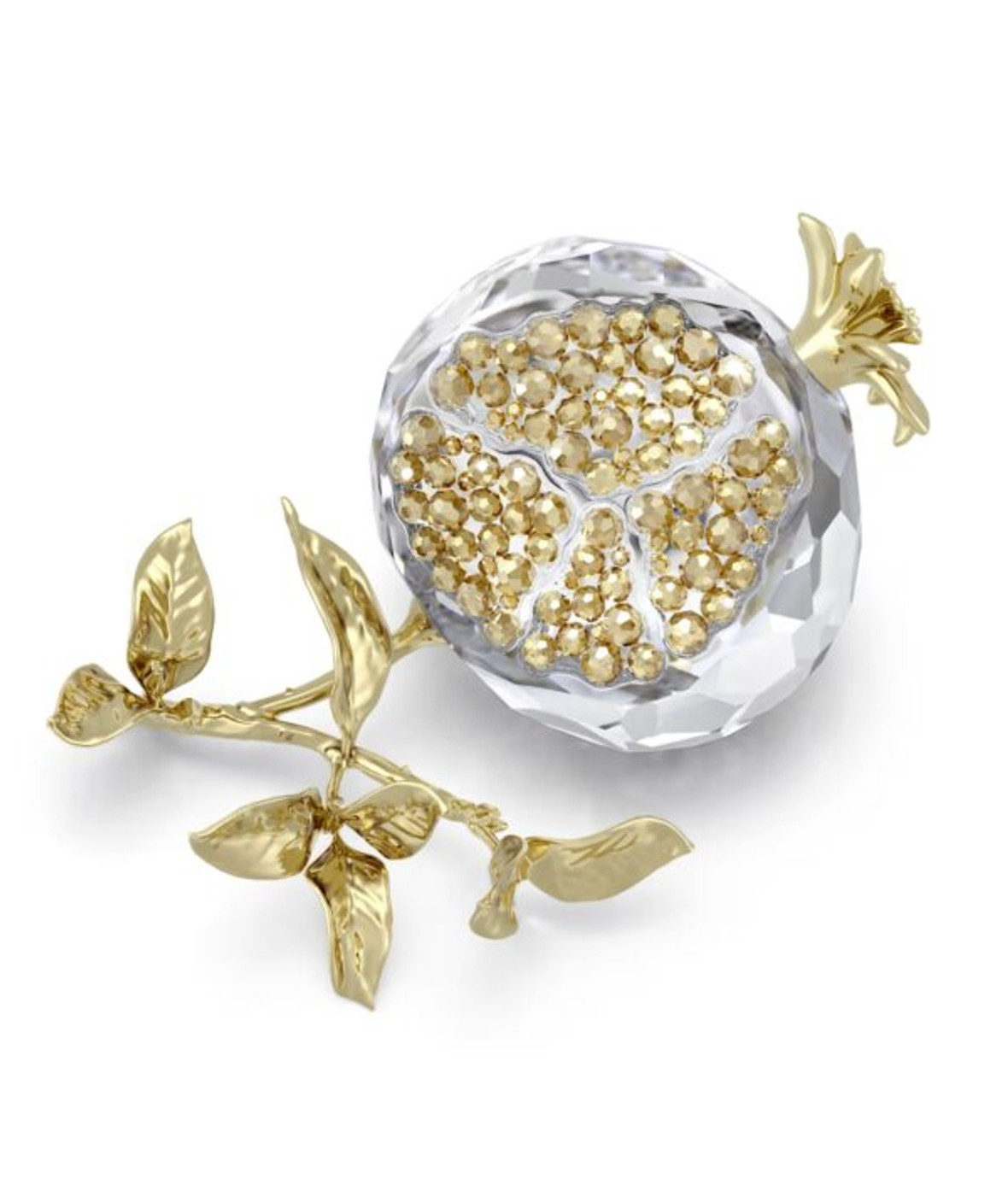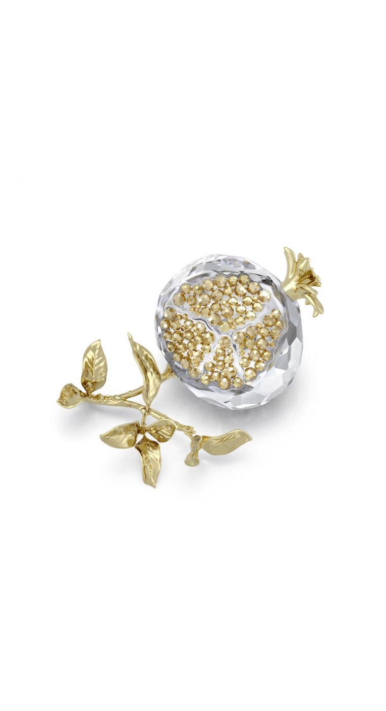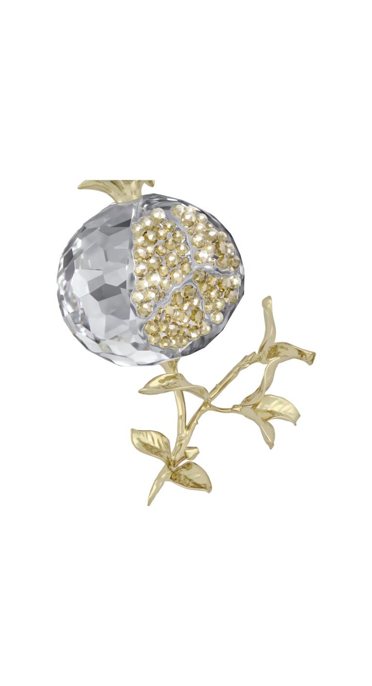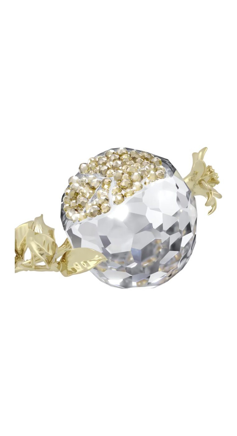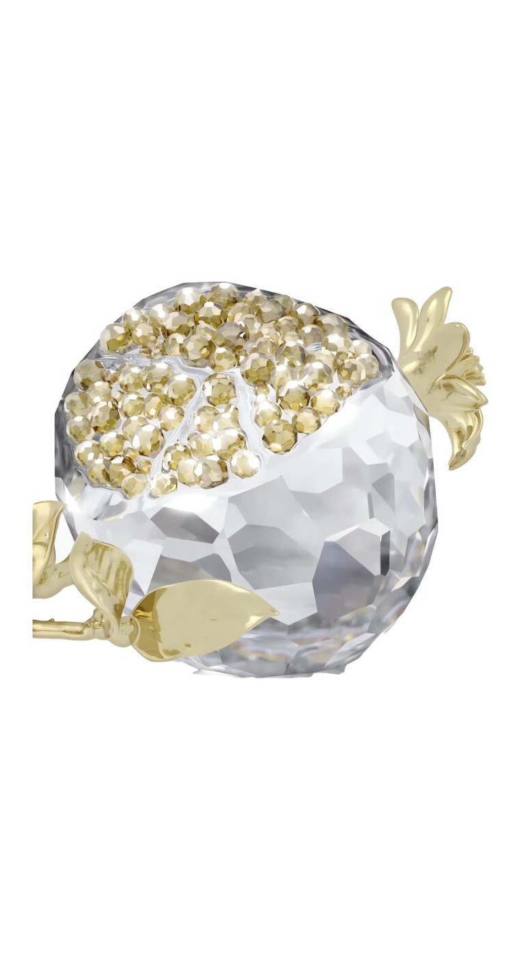 Фигурка Swarovski «Idyllia Pomegranate» из коллекции Idyllia является символом изобилия и процветания. Вдохновлённая природной красотой, эта фигурка полностью инкрустирована кристаллами Swarovski, создающими 116 сияющих граней. В центре композиции расположены 87 Swarovski Crystal Beads, а эффект Jonquil Golden Shine добавляет особый блеск. Металлические стебли и листья имеют изысканное покрытие цвета шампанского золота, подчёркивающее роскошь дизайна. Эта фигурка станет идеальным украшением стола в любое время года.