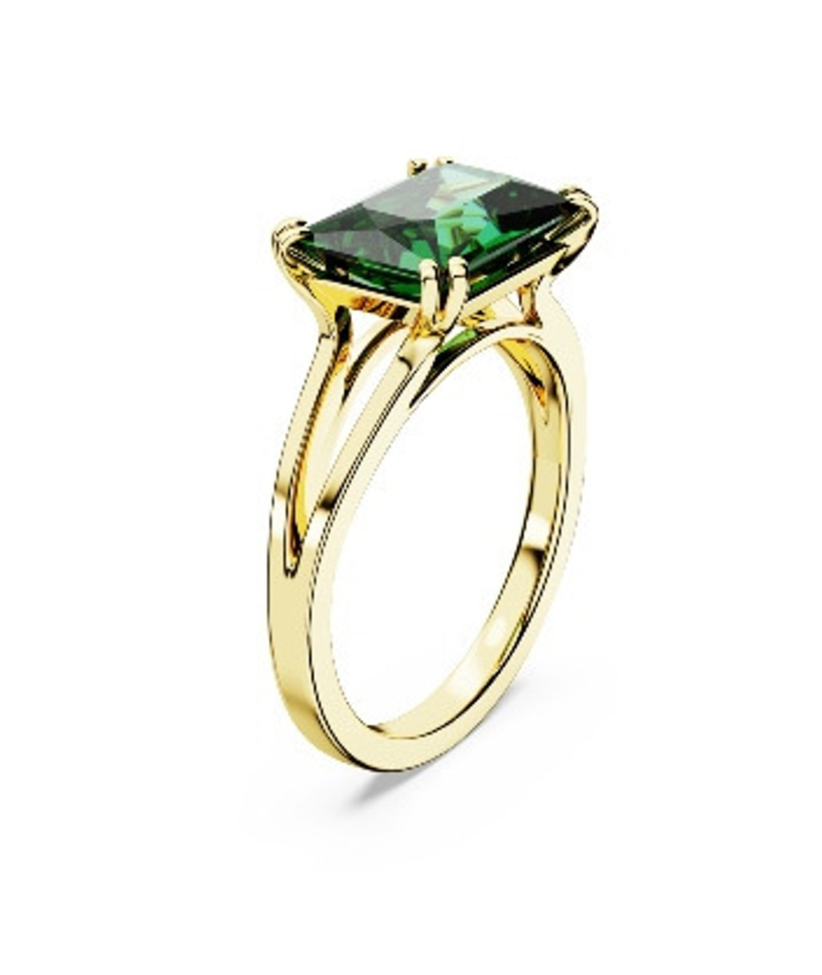 Это кольцо Stilla имеет современный вид благодаря зеленому оттенку. Изысканный дизайн с покрытием оттенка цвета желтого золота украшен прямоугольным кристаллом Swarovski энергичного изумрудного оттенка, который удерживается элегантной двойной закрепкой. Современный выбор, излучающий естественную красоту.