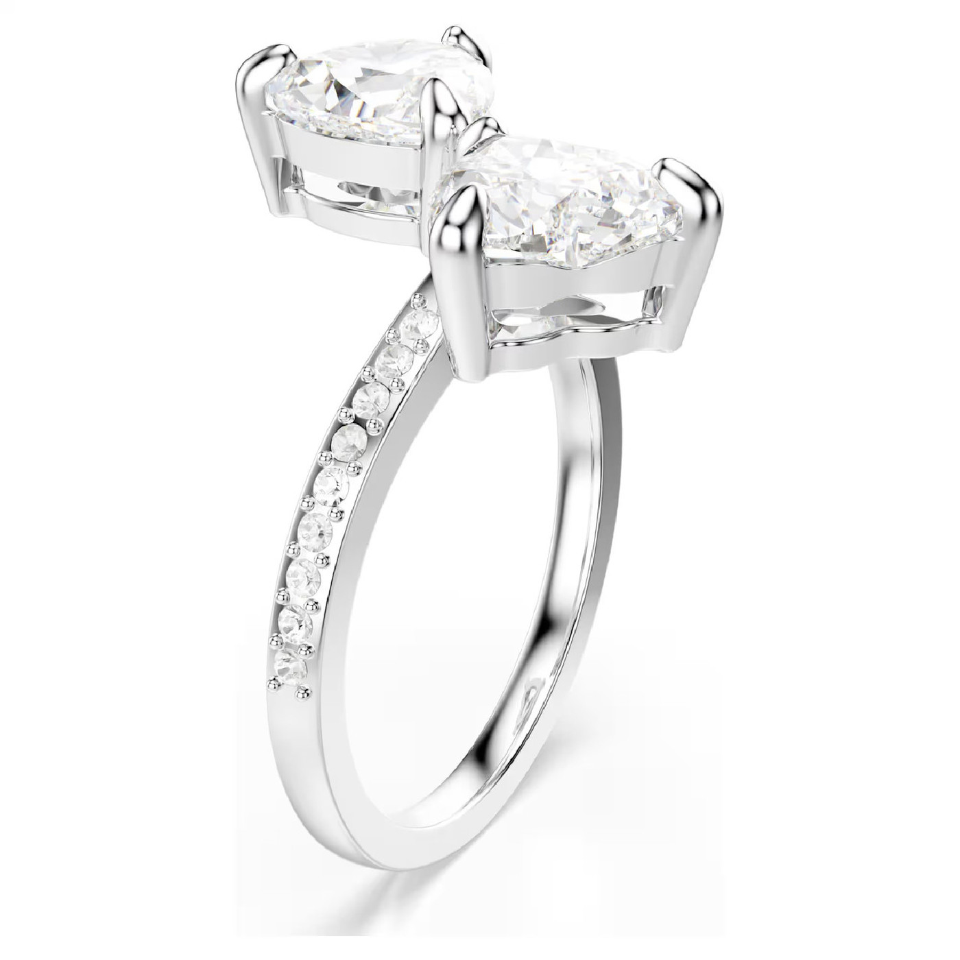 Это кольцо с родиевым покрытием Swarovski вдохновлено идеей встречи двух сердец. Оно воплощает романтику благодаря двум кристаллам в форме сердца, тонко ограненным в центре. Сияющая белизна сердец ещё больше подчёркивается простым, но элегантным дизайном. Благодаря своей непреходящей символичности это кольцо Swarovski станет идеальным подарком для любимого человека.