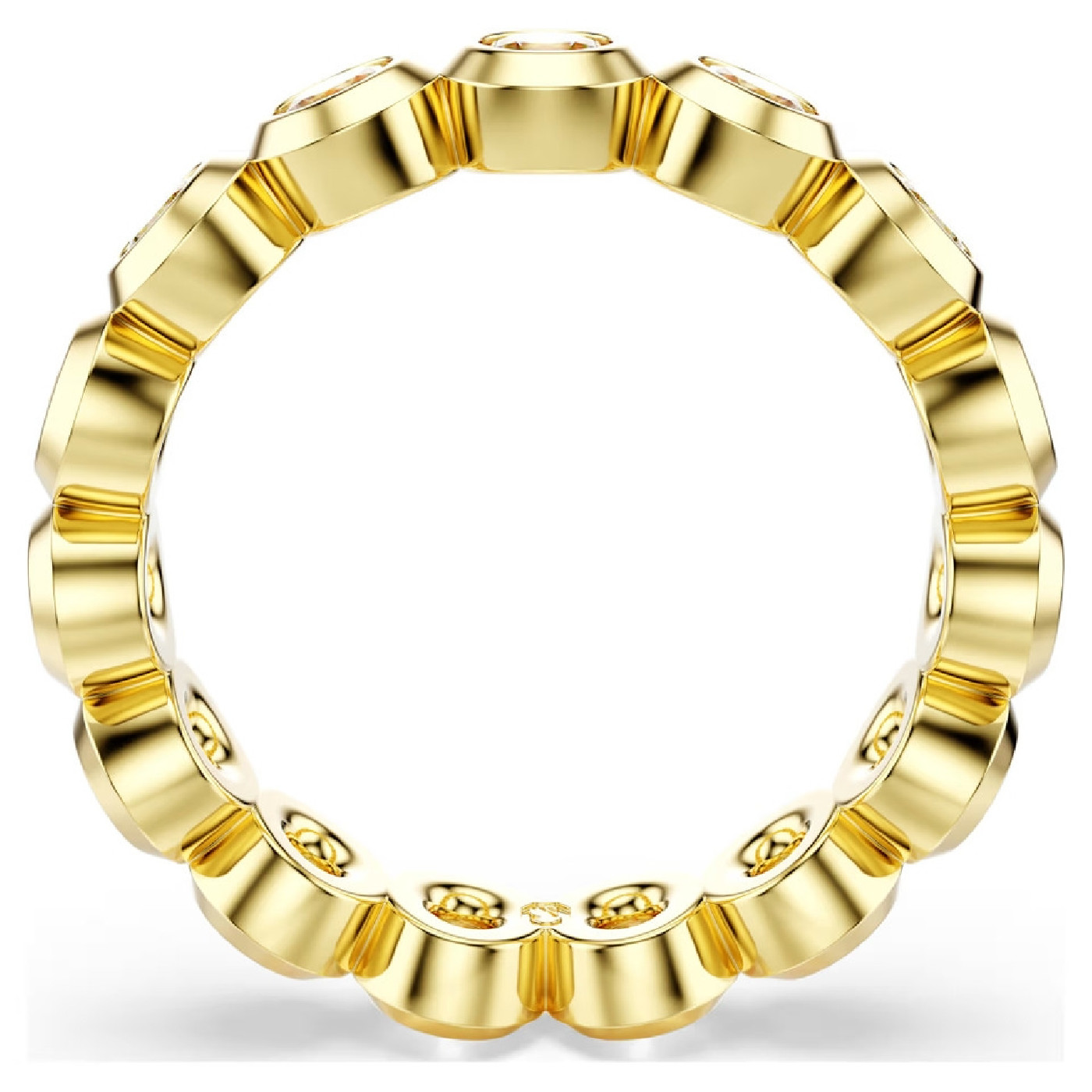 Это потрясающее кольцо Imber, созданное как нимб света. Оправа с покрытием оттенка цвета желтого золота искусно украшена полным кругом из круглых кристаллов Swarovski, каждый из которых помещен в современную оправу. Привлекающее внимание дополнение к любому наряду, оно придаст непринужденный гламур и днем, и ночью.