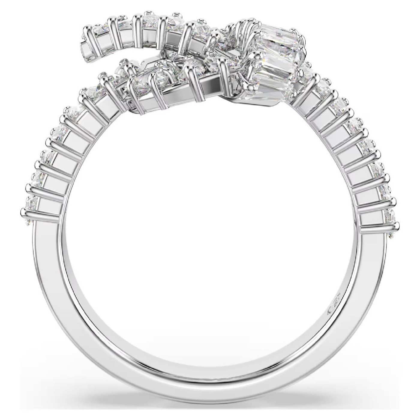 Добавьте яркости в свой образ с этим элегантным кольцом Matrix. Изготовленное с помощью узла в виде ленты, кольцо с родиевым покрытием украшено изысканными кристаллами Swarovski багетной огранки, каждый из которых закреплён в крапановой оправе. Современное и изысканное, это кольцо идеально сочетается с другими украшениями из той же серии.