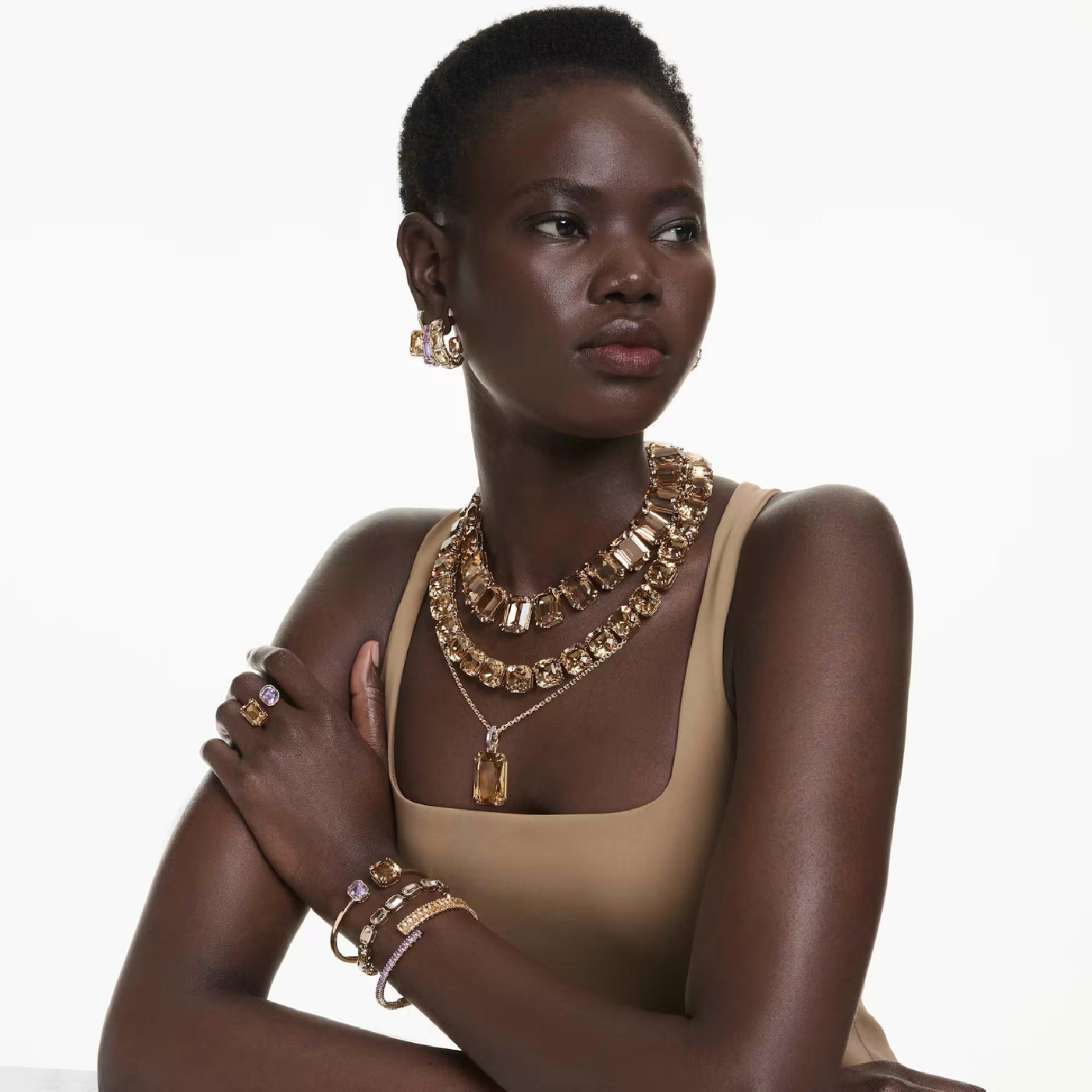 Кольцо Swarovski коллекции Millenia представляет собой асимметричное коктейльное украшение, которое станет новым фаворитом в вашей коллекции. Открытая конструкция кольца с покрытием оттенка цвета желтого золота украшена кристаллами: фиолетовым, закреплённым в ободковой закрепке, и карамельным в двойной крапановой закрепке. Это кольцо можно носить как самостоятельное украшение или сочетать с другими кольцами из коллекции Millenia для создания безупречного современного образа.