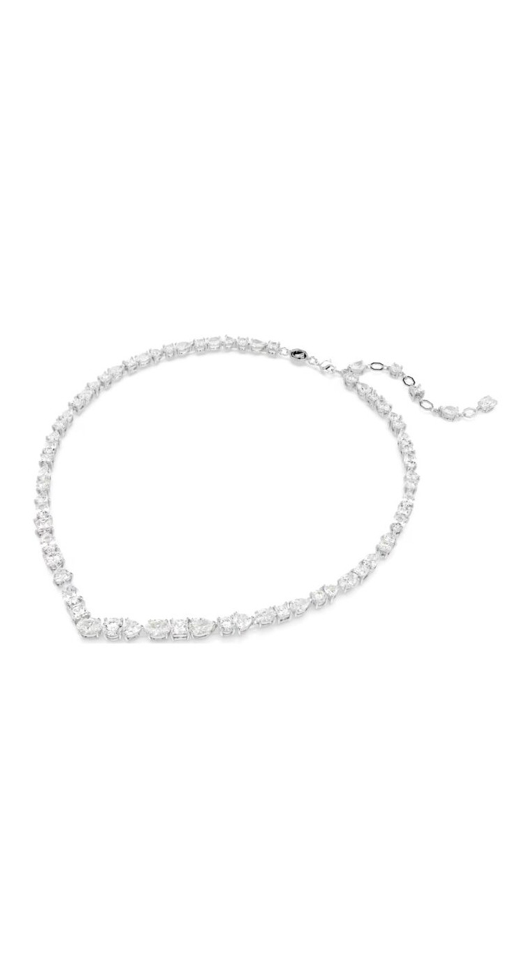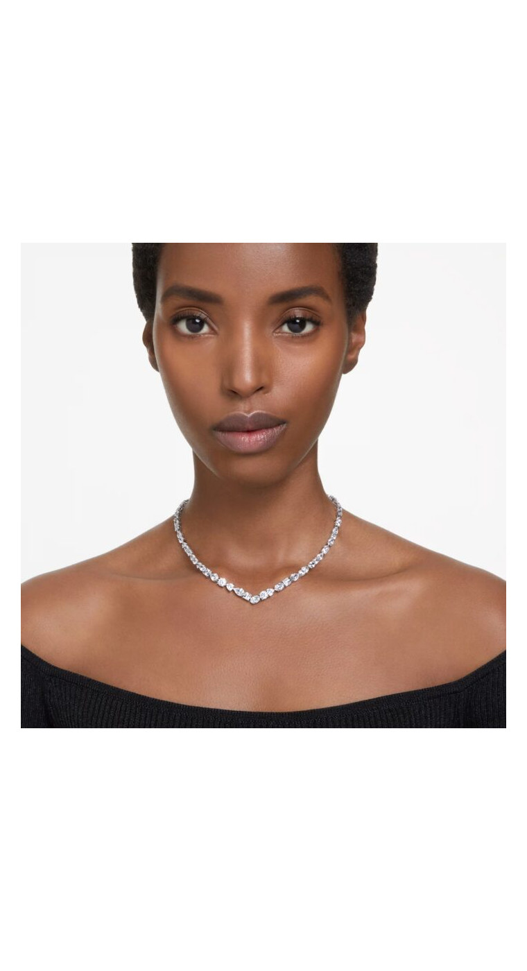 Колье Swarovski коллекции Mesmera воплощает в себе чистое изящество благодаря ослепительному дизайну с разнообразием огранок и размеров Swarovski Zirconia. Родиевое покрытие подчёркивает сияние кристаллов, создавая эффектный акцент на шее. Удлинение колье завершается карабином и россыпью кристаллов, добавляя нотку роскоши. Это украшение станет идеальным подарком для тех, кто ценит стиль и элегантность, и будет радовать своим блеском снова и снова.