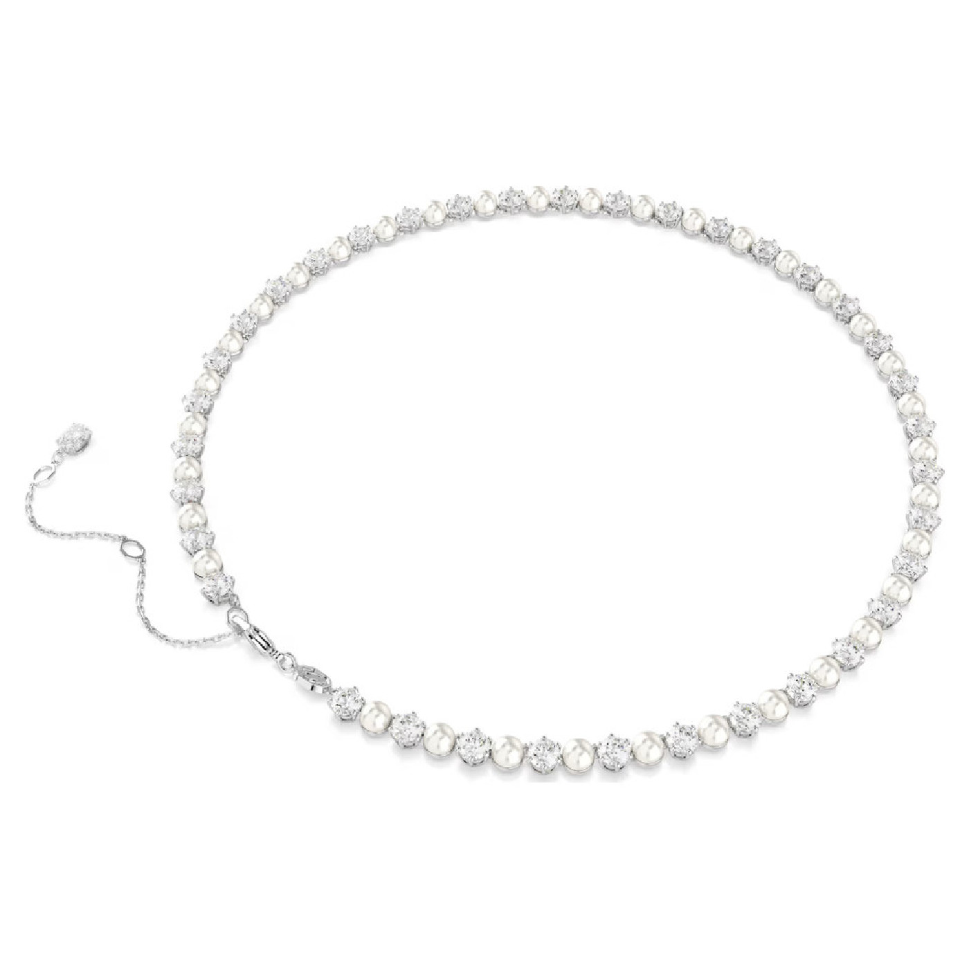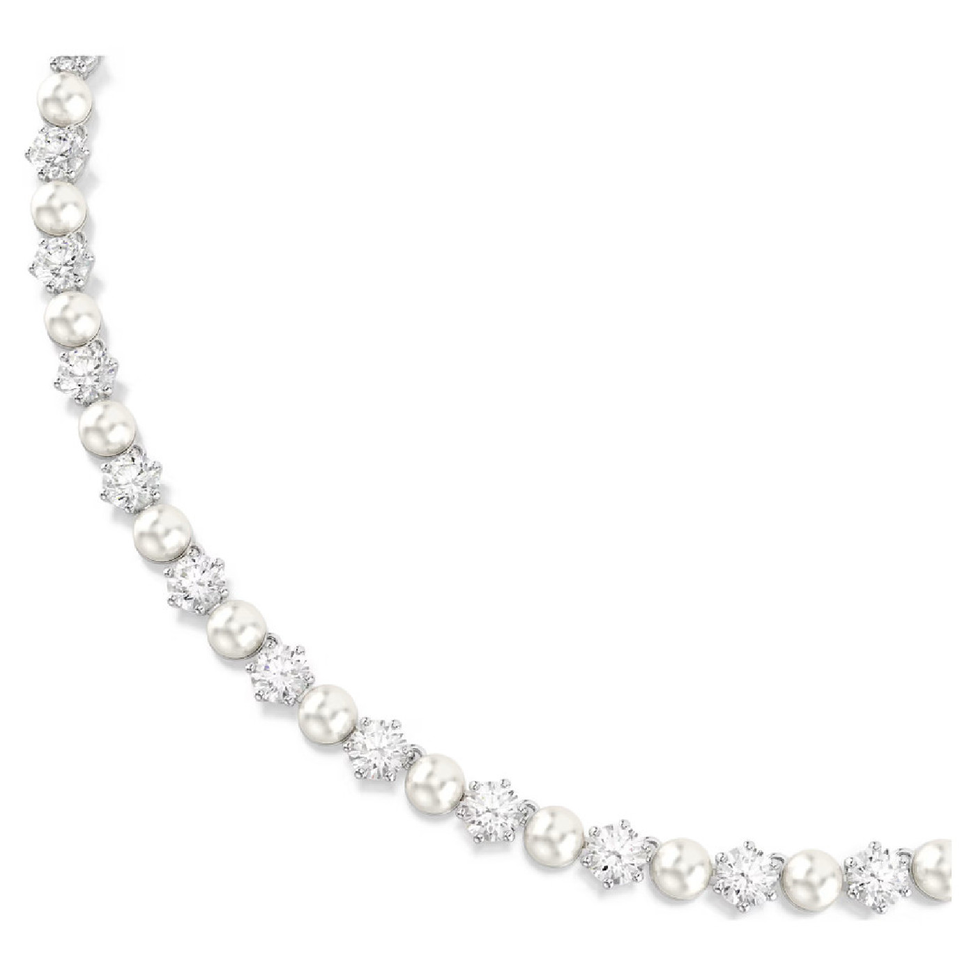 Колье Swarovski коллекции Matrix Tennis воплощает гармонию современного и классического стилей. Изделие украшено чередующимися крсталлами Swarovski Zirconia и мелкими Swarovski Crystal Pearls (Кристаллический Жемчуг), создавая непрерывный и изысканный ряд. Родиевое покрытие подчеркивает утончённость и долговечность украшения. Дополнительный удлинитель позволяет настроить длину колье по вашему желанию, делая его универсальным выбором для любого случая. Это идеальное сочетание современности и классики, которое завершает образ с ноткой изысканности.