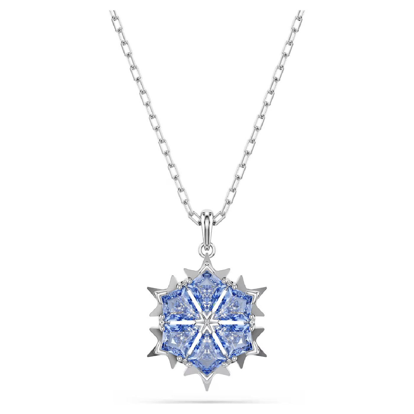 Окунитесь в очарование этого маленького кулона в виде снежинки, выполненного из сверкающих серо-голубых кристаллов Swarovski. Дизайн с родиевым покрытием и изящной цепочкой позволит вам с легкостью перейти от дневного образа к вечернему торжеству. Сочетайте его с другими украшениями Magic, чтобы подчеркнуть свой гламурный стиль.