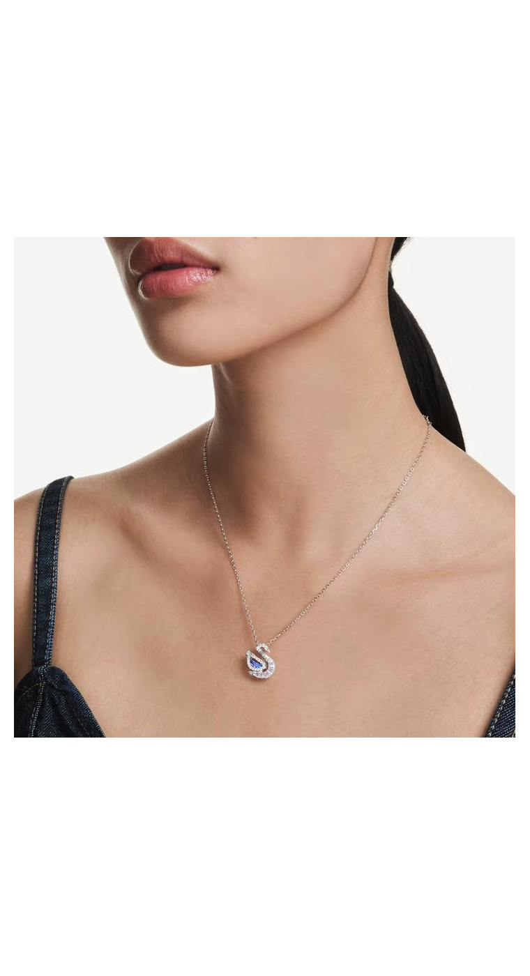 Эта подвеска передает грациозность движений культового лебедя Swarovski. Центральный мотив, подвешенный на цепочке с родиевым покрытием, раскрывает элегантный силуэт, украшенный прозрачными кристаллами Swarovski и синим танцующим камнем в форме лебедя. Эта сияющая деталь создает бесконечное движение цвета и света, поддерживая ваш стиль в любое время.