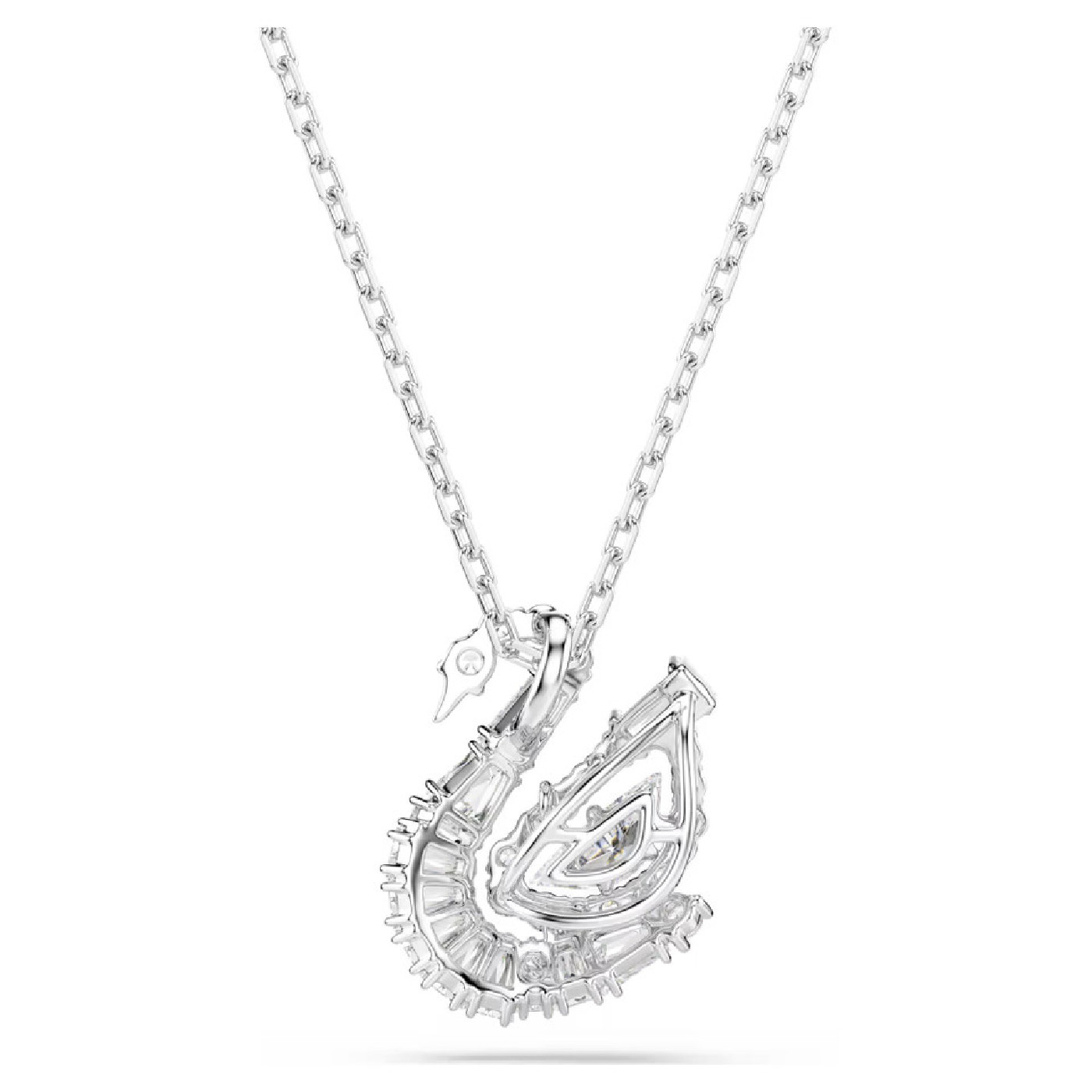 Эта подвеска передает грациозность движений культового лебедя Swarovski. Центральный мотив, подвешенный на цепочке с родиевым покрытием, раскрывает элегантный силуэт, украшенный кристаллами Swarovski и прозрачным танцующим камнем в форме лебедя. Эта сияющая деталь создает бесконечное движение света и будет сиять в любой момент.