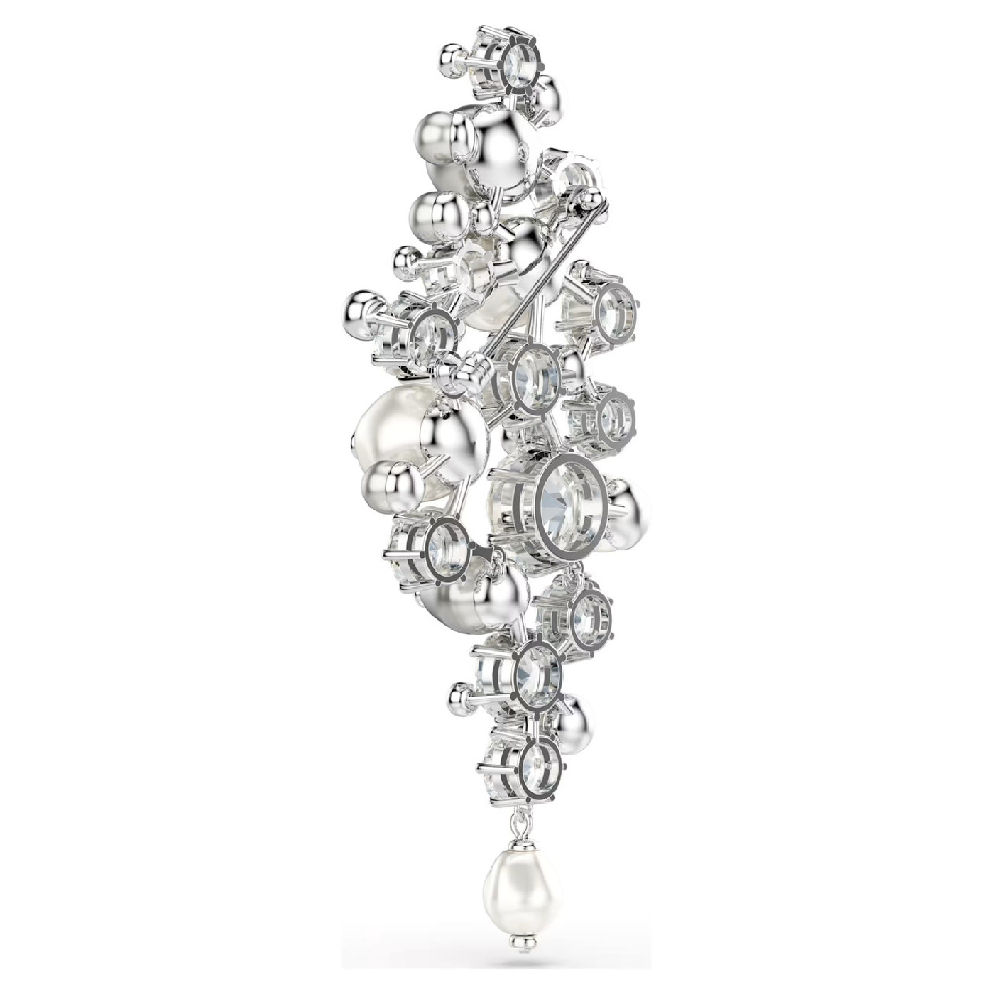 Откройте для себя космическую сторону своего стиля с этой звездообразной брошью с родиевым покрытием. Эффектный силуэт раскрывается россыпью прозрачных кристаллов и белых и серых жемчужин Swarvoski, тщательно подобранных в сложном, но гармоничном стиле. Носите эту брошь с подходящими серьгами или чокером, чтобы усилить звёздный эффект.