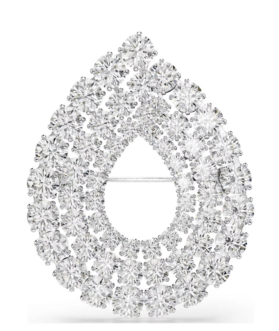 Эта ослепительная брошь, выполненная в форме сверкающей капли дождя, добавит блеска любому наряду. Дизайн с родиевым покрытием включает три кольца из круглых кристаллов Swarovski трех разных размеров для максимального гламура. Потрясающая демонстрация мастерства Swarovski, которую можно сочетать с серьгами в тон.