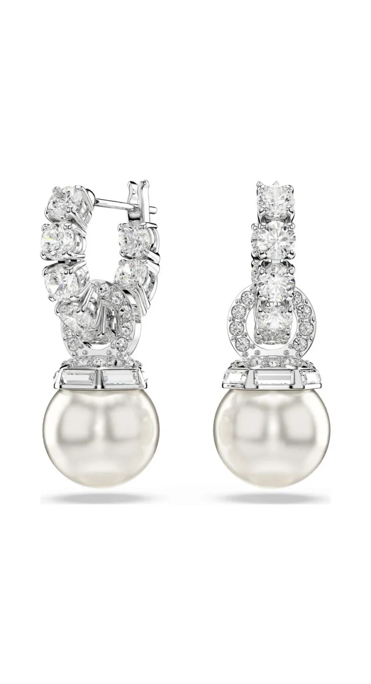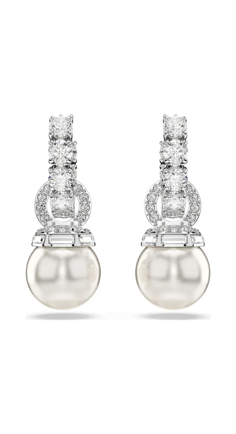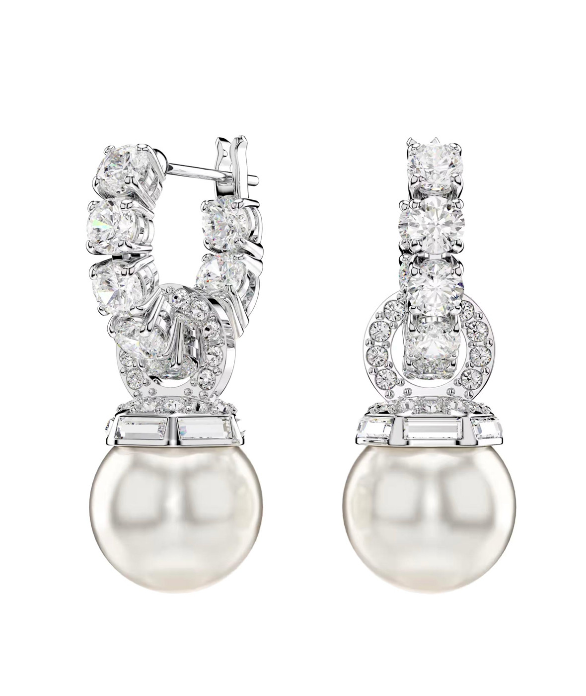 Серьги Swarovski Matrix переосмысливают классику в духе современной элегантности. Их изящная форма — это гармоничное сочетание теннисных колец и соединяющих элементов, усыпанных сверкающим кристаллическим паве. Завершающий штрих — кристаллический жемчуг Swarovski, придающий образу утончённую чистоту. Эти серьги станут универсальным украшением на каждый день или особый случай. Родиевое покрытие обеспечивает благородный блеск и защиту от потускнения.