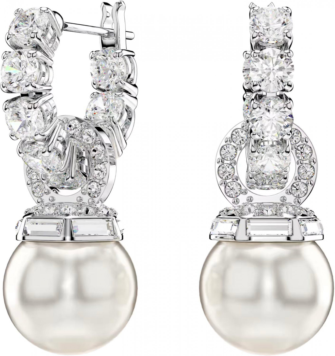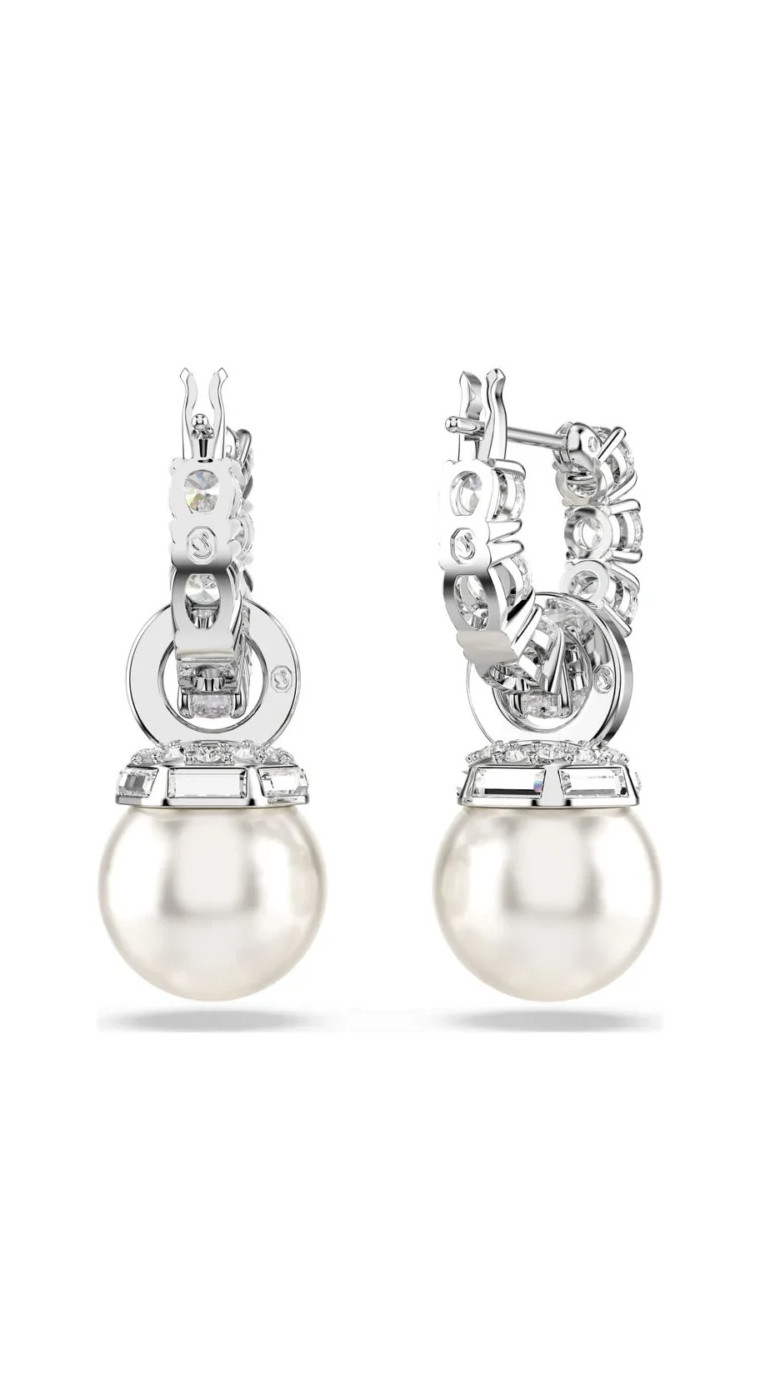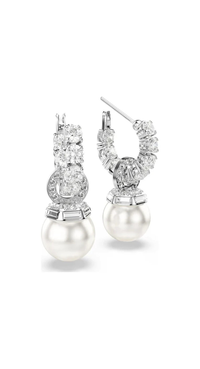 Серьги Swarovski Matrix переосмысливают классику в духе современной элегантности. Их изящная форма — это гармоничное сочетание теннисных колец и соединяющих элементов, усыпанных сверкающим кристаллическим паве. Завершающий штрих — кристаллический жемчуг Swarovski, придающий образу утончённую чистоту. Эти серьги станут универсальным украшением на каждый день или особый случай. Родиевое покрытие обеспечивает благородный блеск и защиту от потускнения.