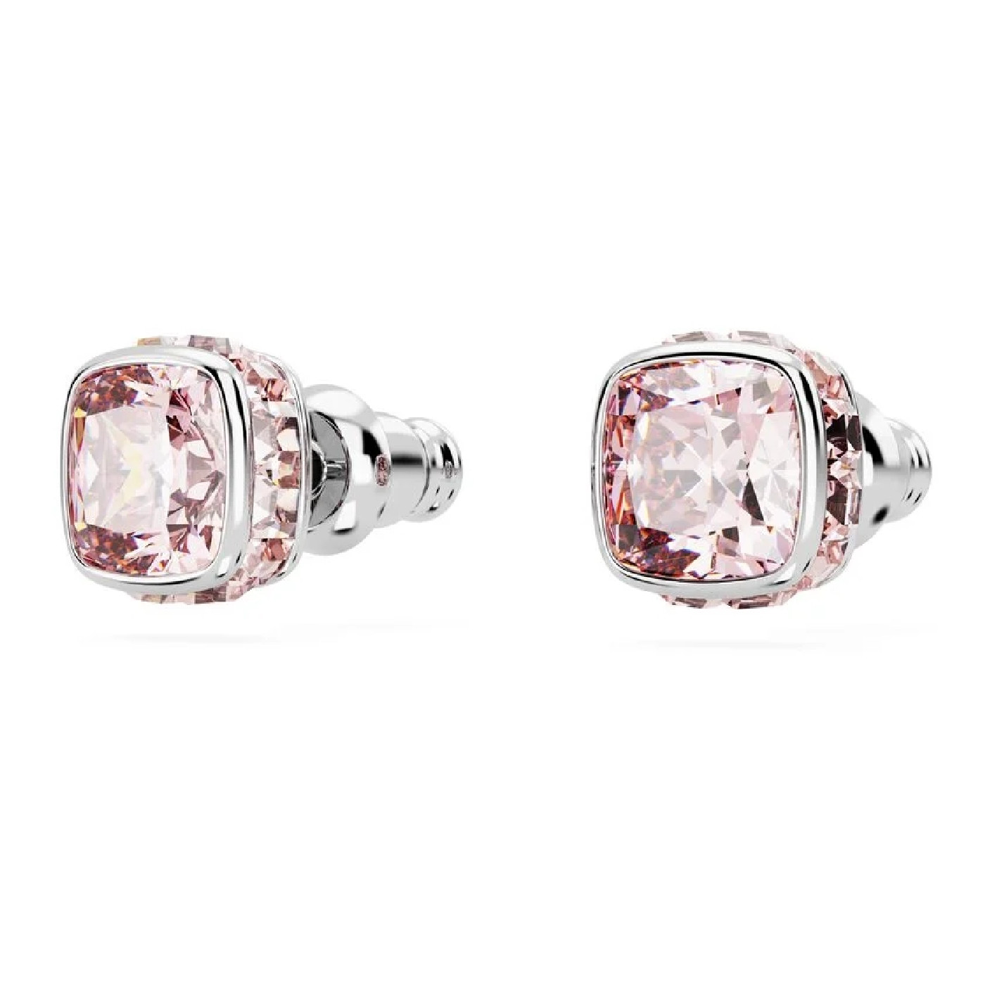 Материал: металл. Цвет: розовый, серебристый. Отделка: родиевое покрытие. Камень-вставка: кристалл Swarovski. Габаритные размеры: 0,9 х 0,9 см.