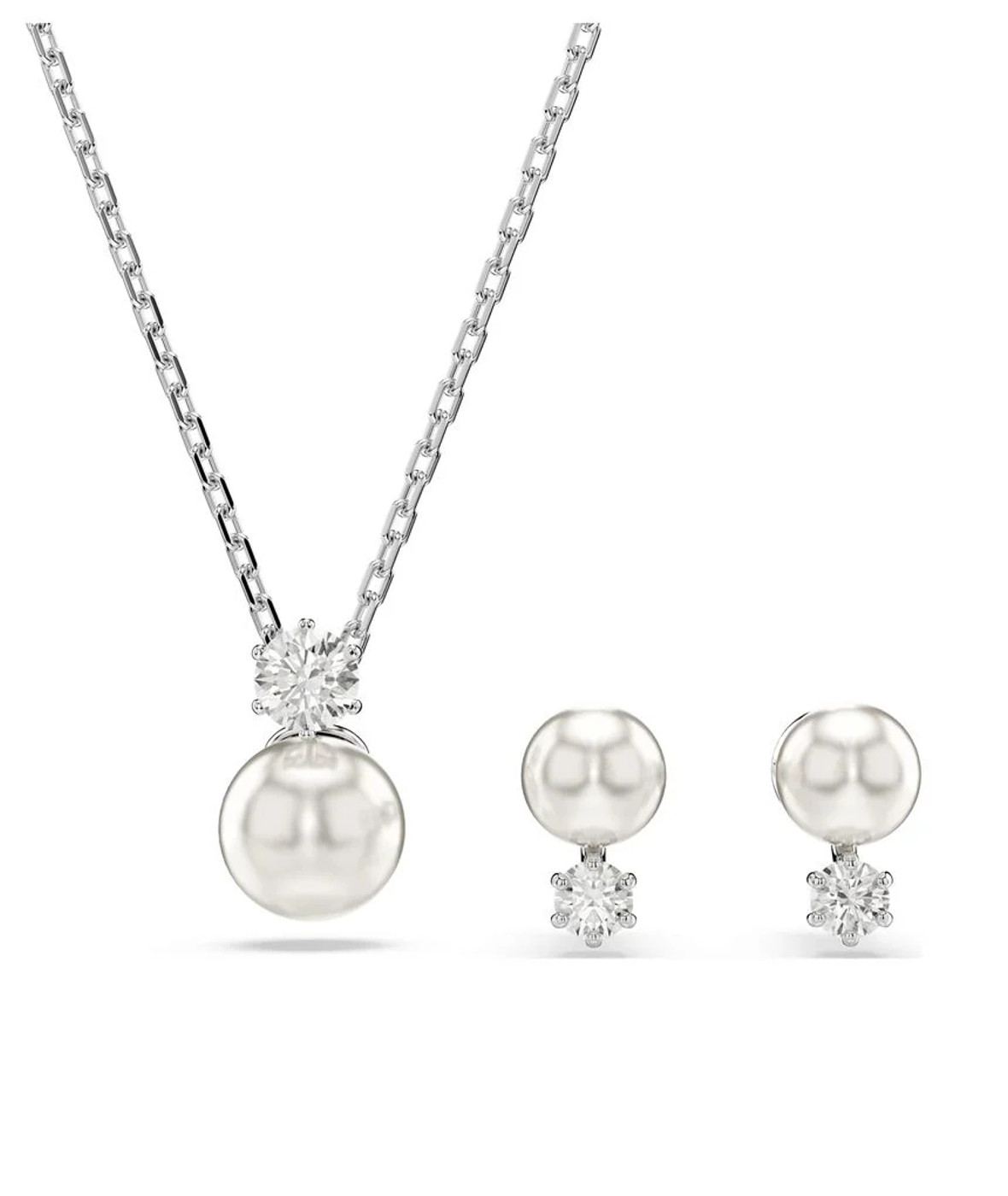 По-настоящему культовый комплект, эта прекрасная пара Matrix включает подвеску и серьги, наполненные сиянием. Подвеска подвешена на цепочке с родиевым покрытием и украшена белой жемчужиной Swarovski Crystal Pearl и круглым кристаллом Swarovski Zirconia. Та же потрясающая комбинация представлена на каждой серьге-гвоздике. Носите с футболкой и джинсами для создания непринужденно неотразимого образа.
