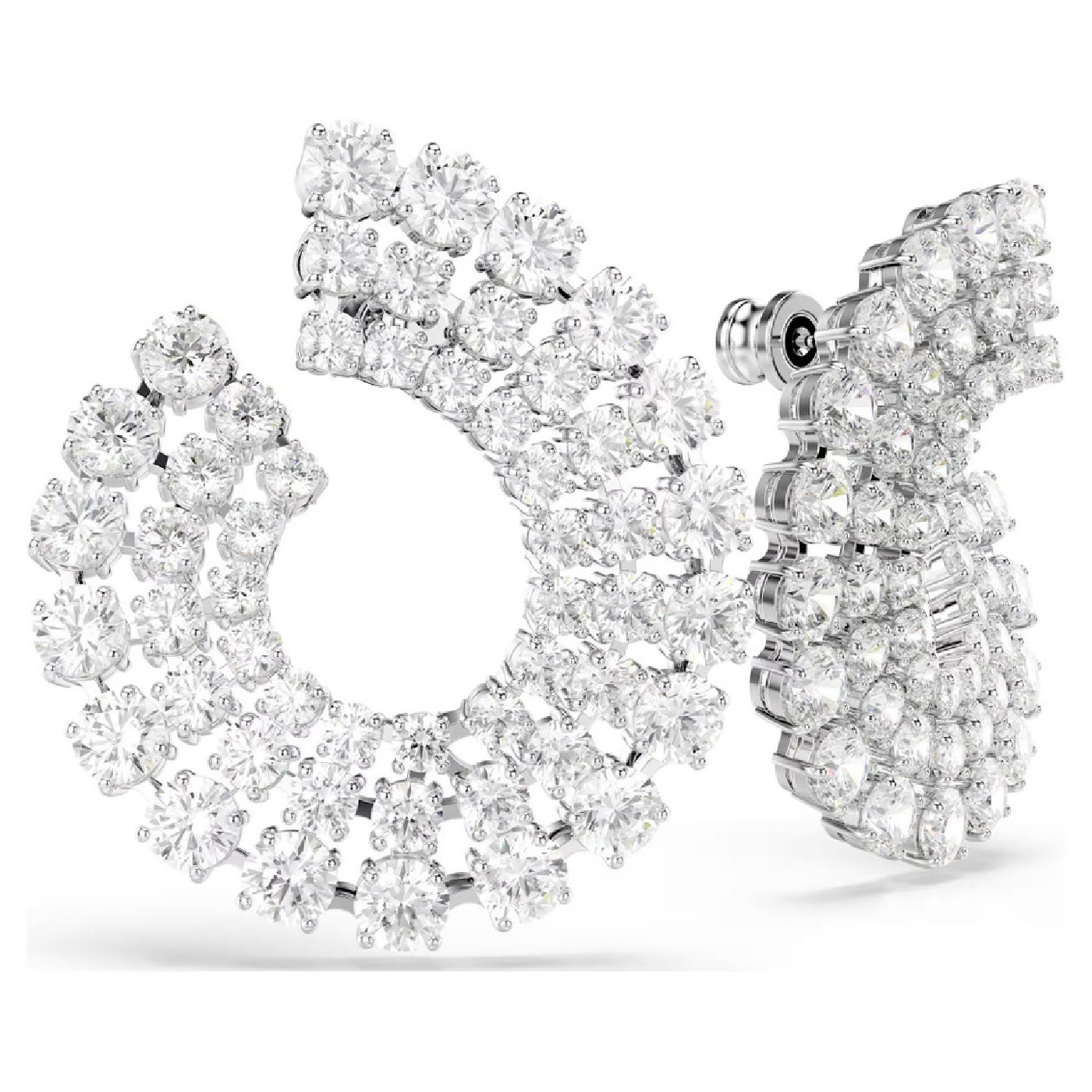 Украсьте себя с изумлением этими завораживающими серьгами из серии Matrix. Каждое изделие с родиевым покрытием украшено тремя спиралями из круглого кристалла Swarovski, представленными в трех разных размерах для ультрагламурного вида. Потрясающая демонстрация мастерства Swarovski в области света, которая эффектно зажжет любой ваш наряд.