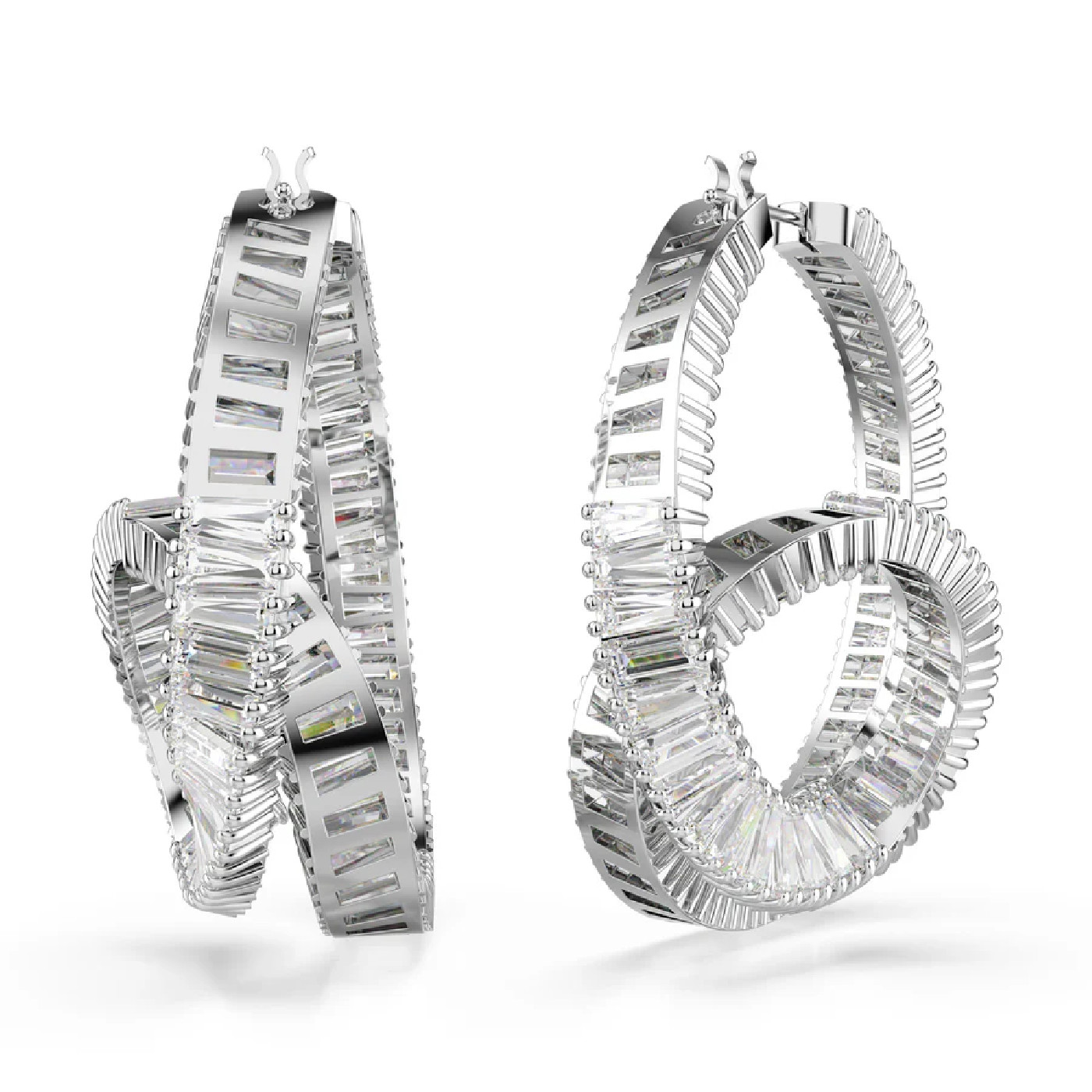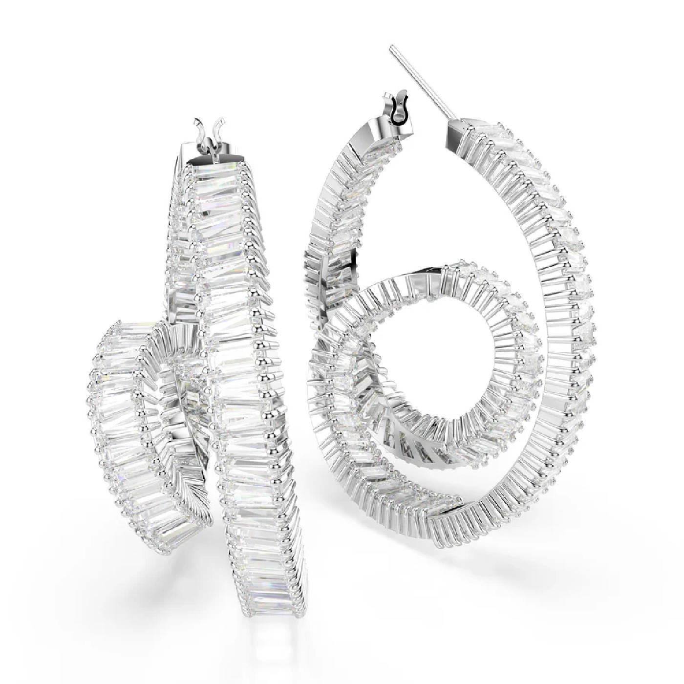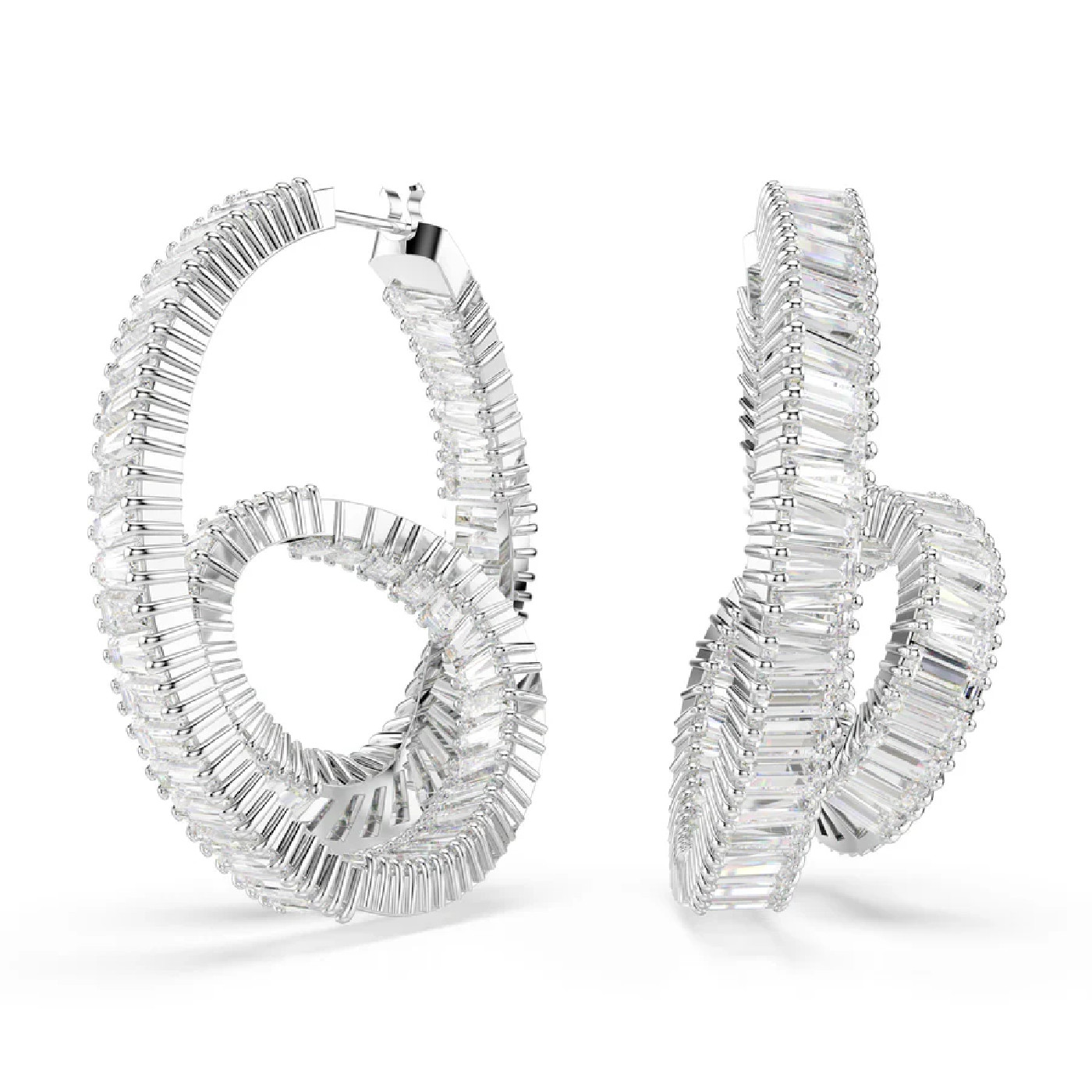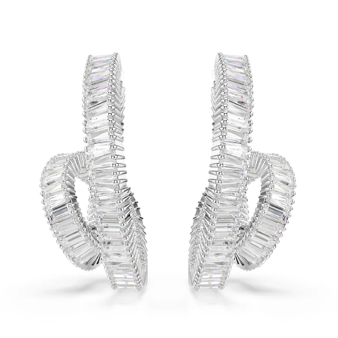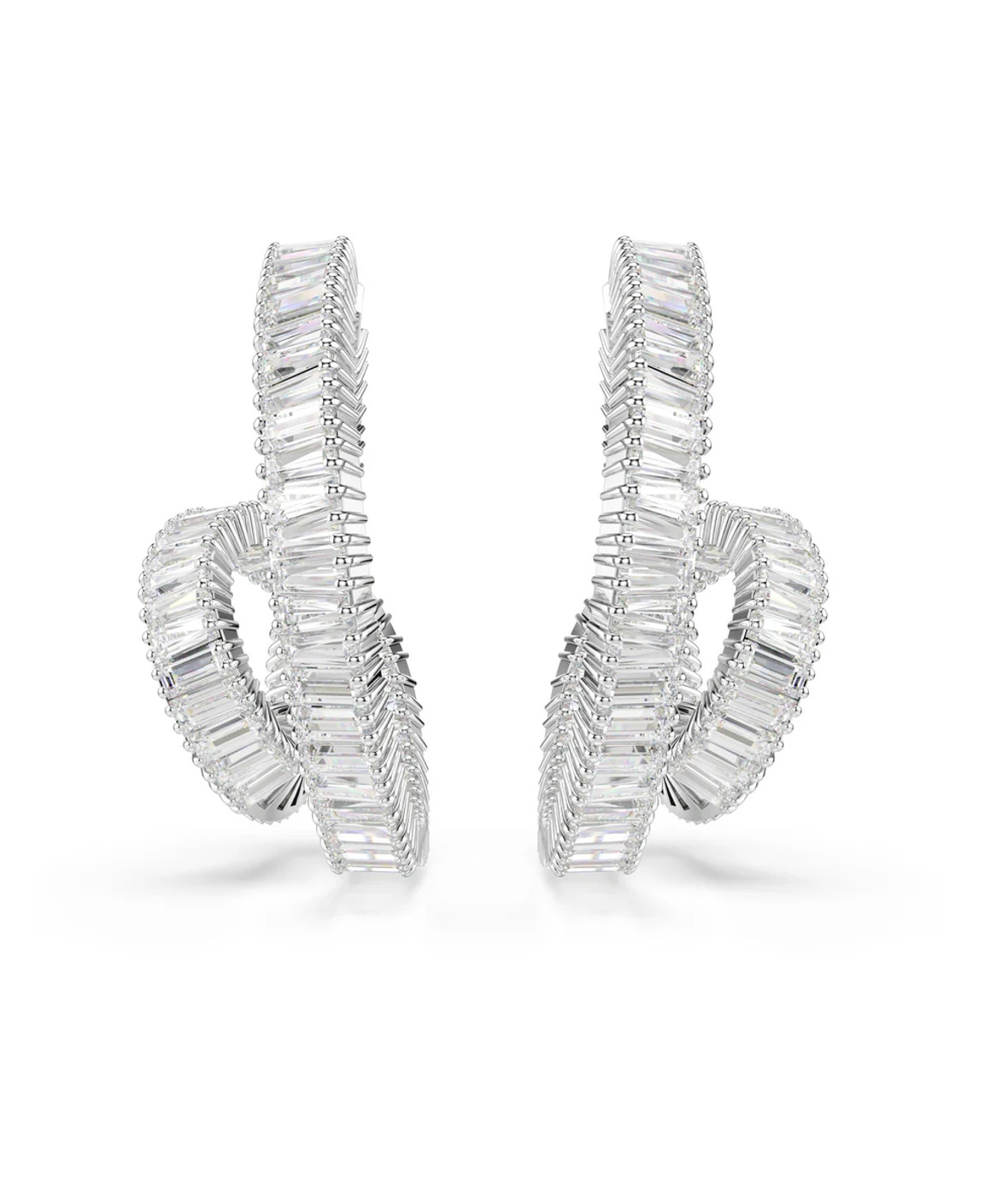 Эти серьги Matrix с уникальным закрученным дизайном излучают свет во всех направлениях. Каждое изделие с родиевым покрытием, напоминающее форму ленты, украшено завитком из кристаллов Swarovski багетной огранки в крапановой оправе. Это эффектная пара колец для создания экстравагантного образа и идеальное сочетание с подходящей подвеской Matrix.