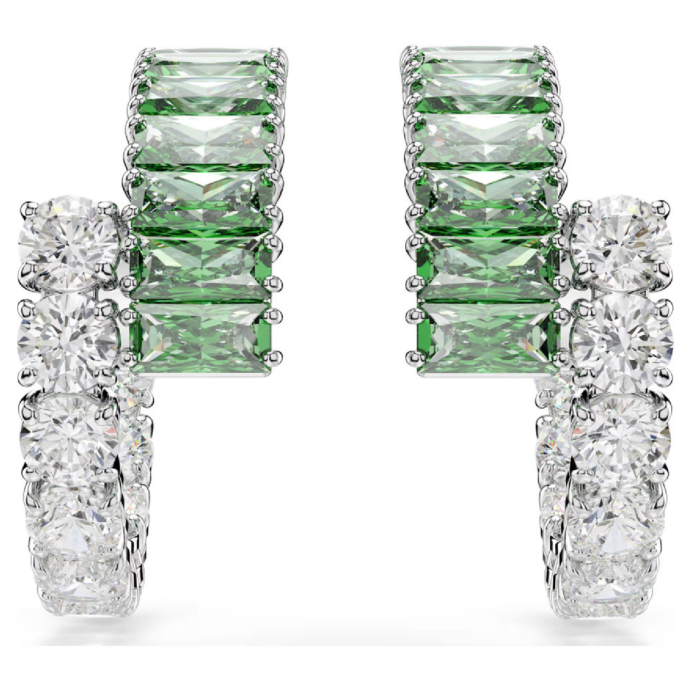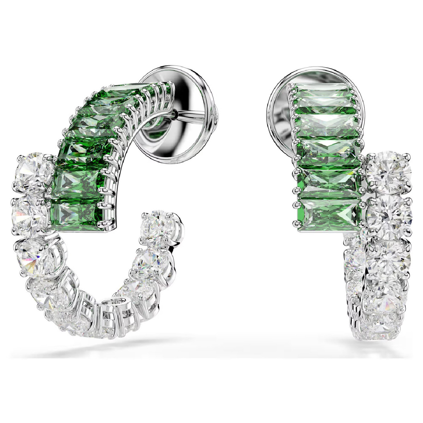 Эти роскошные серьги Matrix созданы для яркого сияния. Каждое маленькое кольцо покрыто родием и украшено перекрывающимся узором из прозрачных и зелёных кристаллов Swarovski круглой и багетной огранки. Эти серьги станут прекрасным выбором как для повседневного, так и для вечернего образа. Их можно сочетать с подходящим кольцом или браслетом, чтобы подчеркнуть цветовую гамму вашего образа.